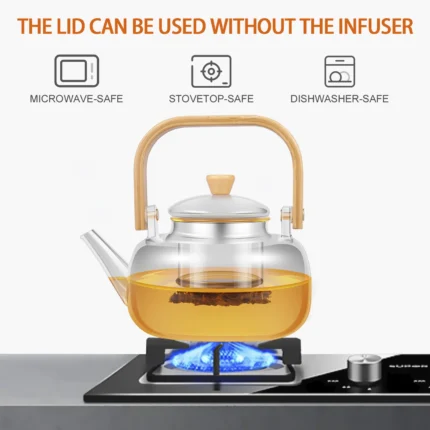 Glass Teapot with Stainless Steel Infuser Heat Resistant Glass Tea Pot Kitchen Dining Bar Tea Kettle Home Teaware
