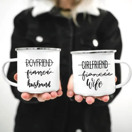 Mr and Mrs Mugs Cute Valentine’s Day Gift His and Hers Lovers Camp Cup Husband and Wife Enamel Mug Gift for Couples