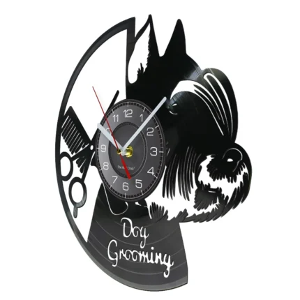 Dog Grooming Salon Vinyl Record Wall Clock Home Art Decor Scottish Terrier Puppy Dog Craft Wall Watch For Pet Shop Groomer Gift