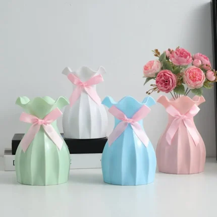 Model Number: vase Function: Tabletop Vase Material: Plastic Style: Modern Style Type: Flower bottle Type01: vase for flowers Flower Vase with Pink Bowknot Unbreakable Plastic Flower