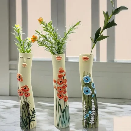 Family Flower Vases Family Bud Vases Boho Flower Plant Holder Cute Girls Face Vase Family Vase Ornament Romantic Decorative