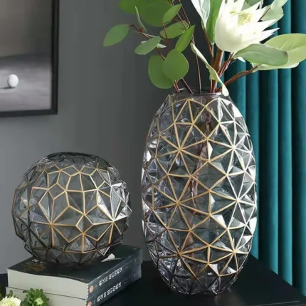Gilt Web Glass Vase Egg Shaped Flower Pitcher Sitting Room Cabinet Glassware Ornament Bedroom Decor Art Collection Craft Gift