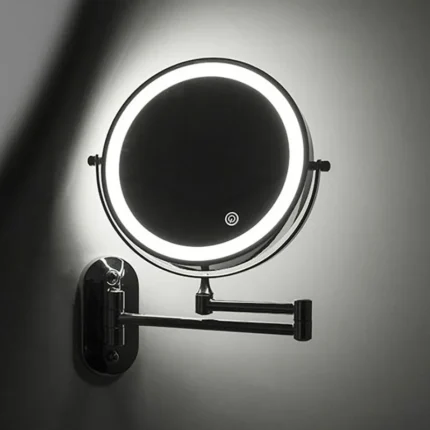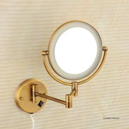 Model Number: LY3064 Style: europe Size: 8 inch Light: Equipped Mirror Shape: Round Type: Framed Mirrors Frame Material: Metal Feature: Magnifying,Illuminated,2-Face,Dual Arm Extend Material: Copper Lenses Material: silver Lenses Material: Silver