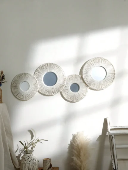 Model Number: mirrors Shape: Round Material: plastic Shape: circle Room Type: Bathroom, Kitchen, Living Room, Bedroom, entryway material: Hemp Rope size: 25/30 cm usaged: wall decor About this