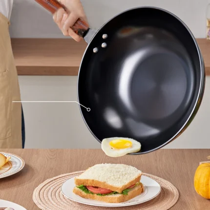 GIANXI 30CM Kitchen Household Cooking Pots Stir-fry Wooden Handle Saucepan Frying Pan And Ok Non-stick Cookware For Kitchen
