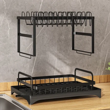 2 Tiers Kitchen Dish Bowl Drainer Storage Rack Knife Fork Cup Holder Space Saver Kitchen Counter Organizer Tableware Drainboard