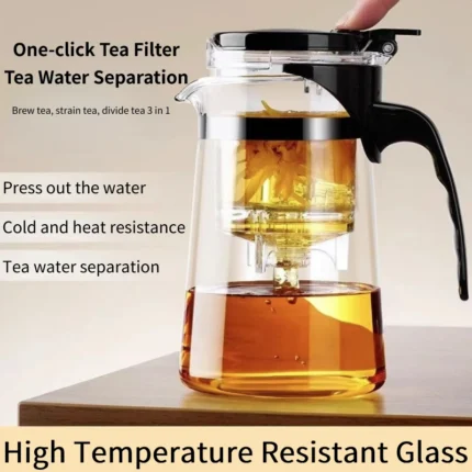 Home One-button Filtering Teapot Kitchen Heat Resistant Glass Tea Water Pot Filtering Tea Separation Glass Kettle 500/750/900ml