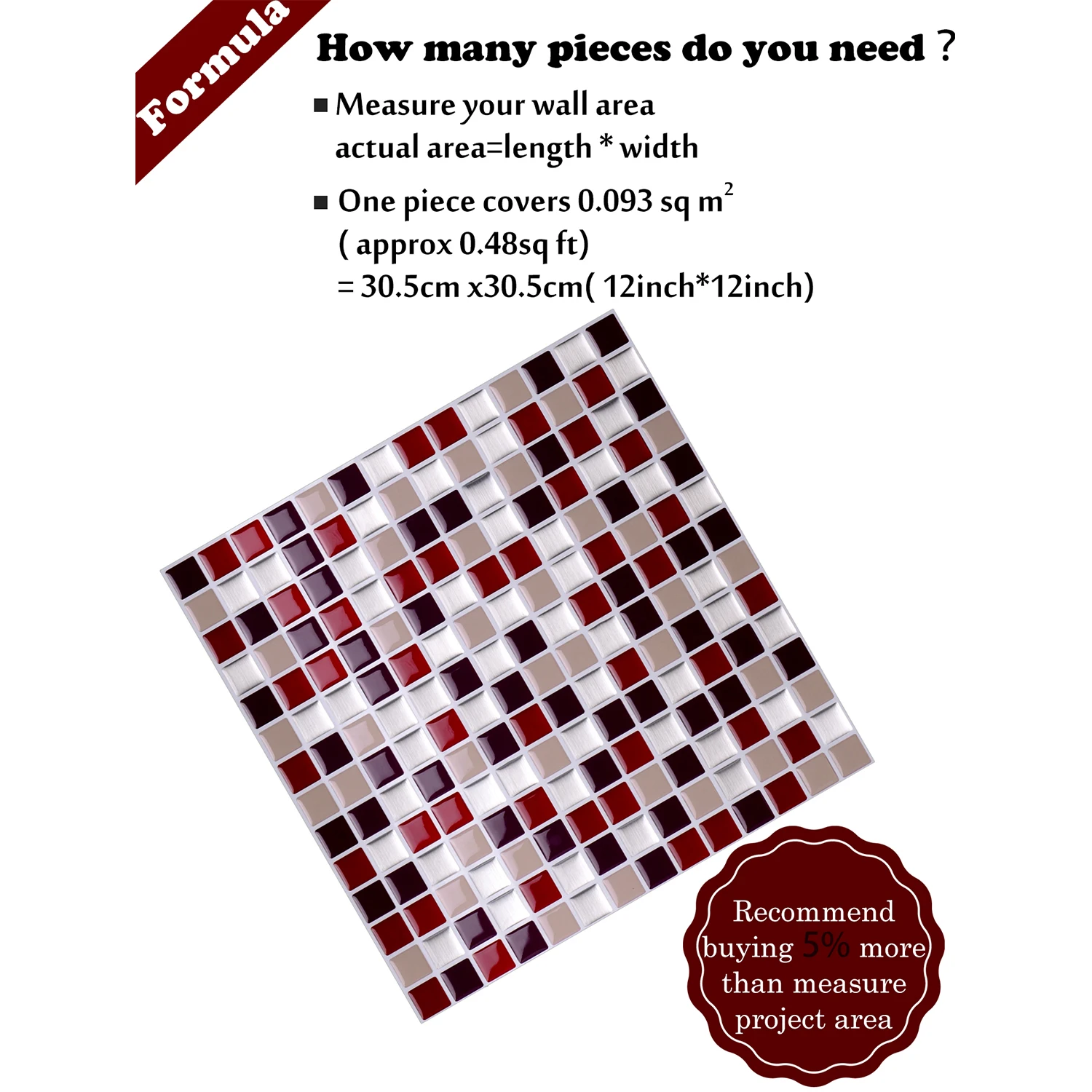 The peel and stick tiles can be worked on all smooth, clean, and dry surfaces, such as painted drywall or even right over ceramic tiles.Just peel and stick, easy to install it. All you need is a ruler, a pencil, a cloth and scissors. This project will save you lost of time and money compared with the real tile. And there is no worry the tile isn’t fit the size of your wall as it is easy to cut.