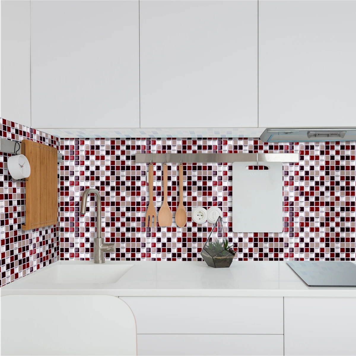 10pcs Self Adhesive Mosaic Wall Tile Sticker DIY Vinyl Wallpaper for Kitchen Bathroom Home Backsplash Decoration