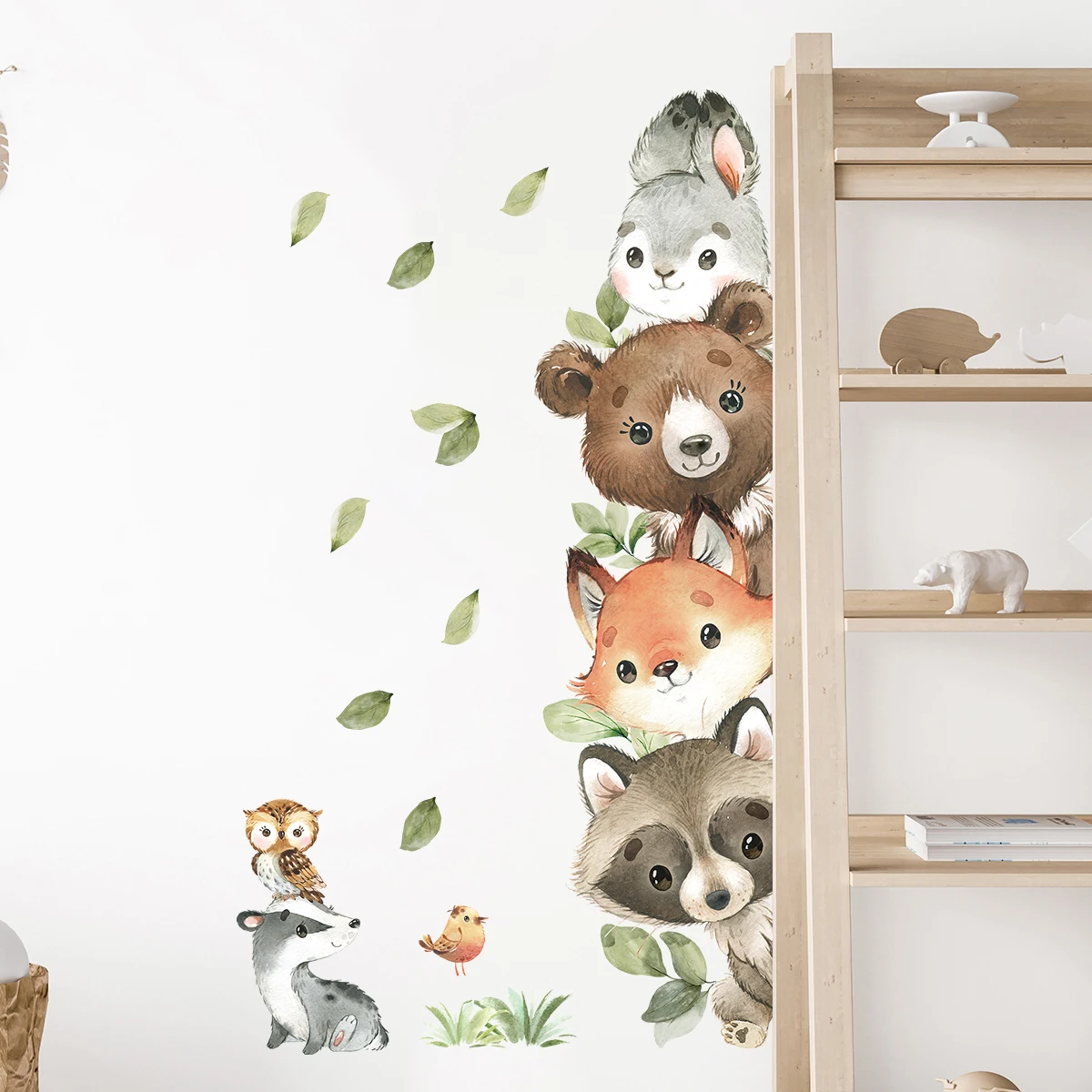 1PC Cute Cartoon Probe Stacked Sitting Small Animal Wall Stickers for Kids Room Bedroom Home Decoration Wall Decor