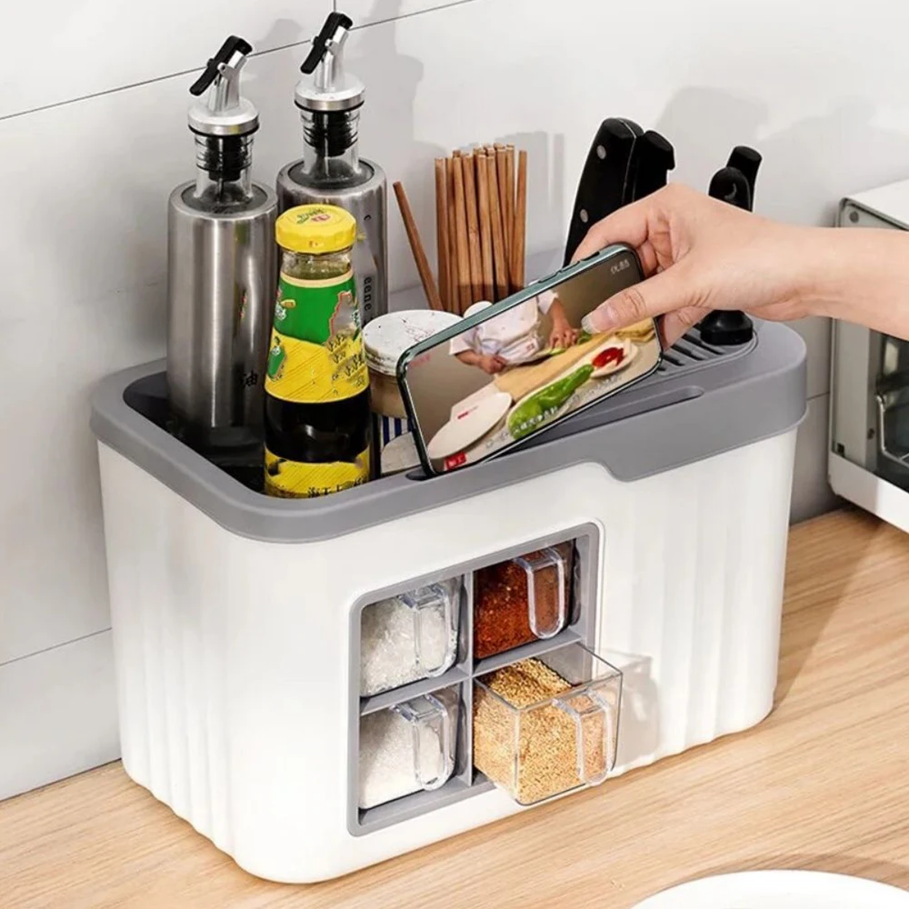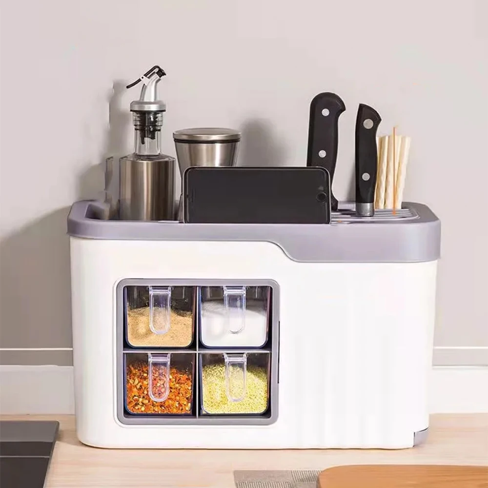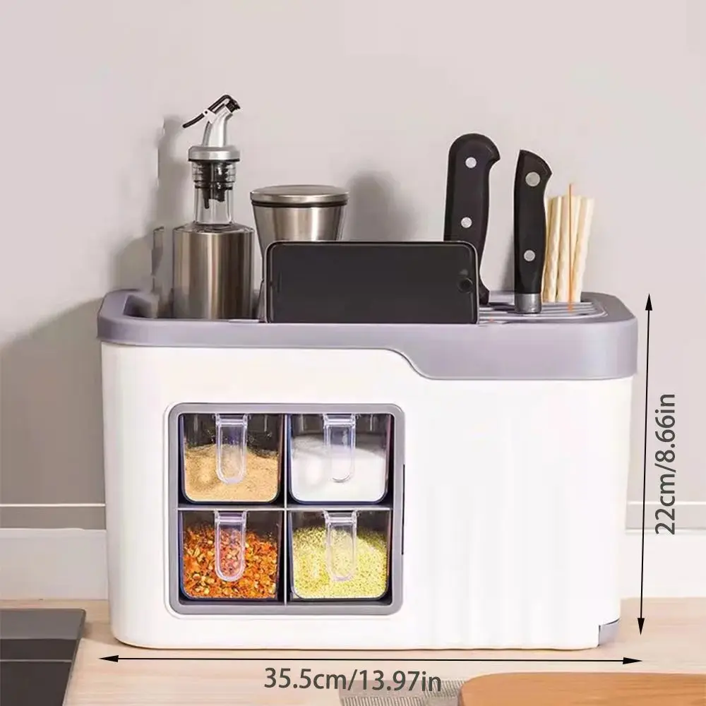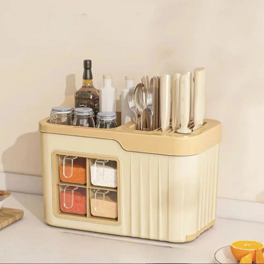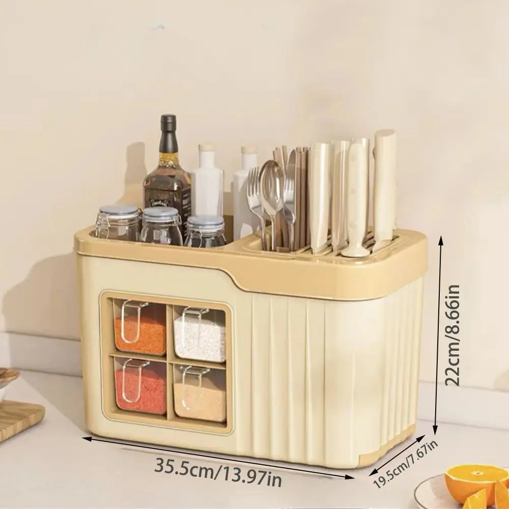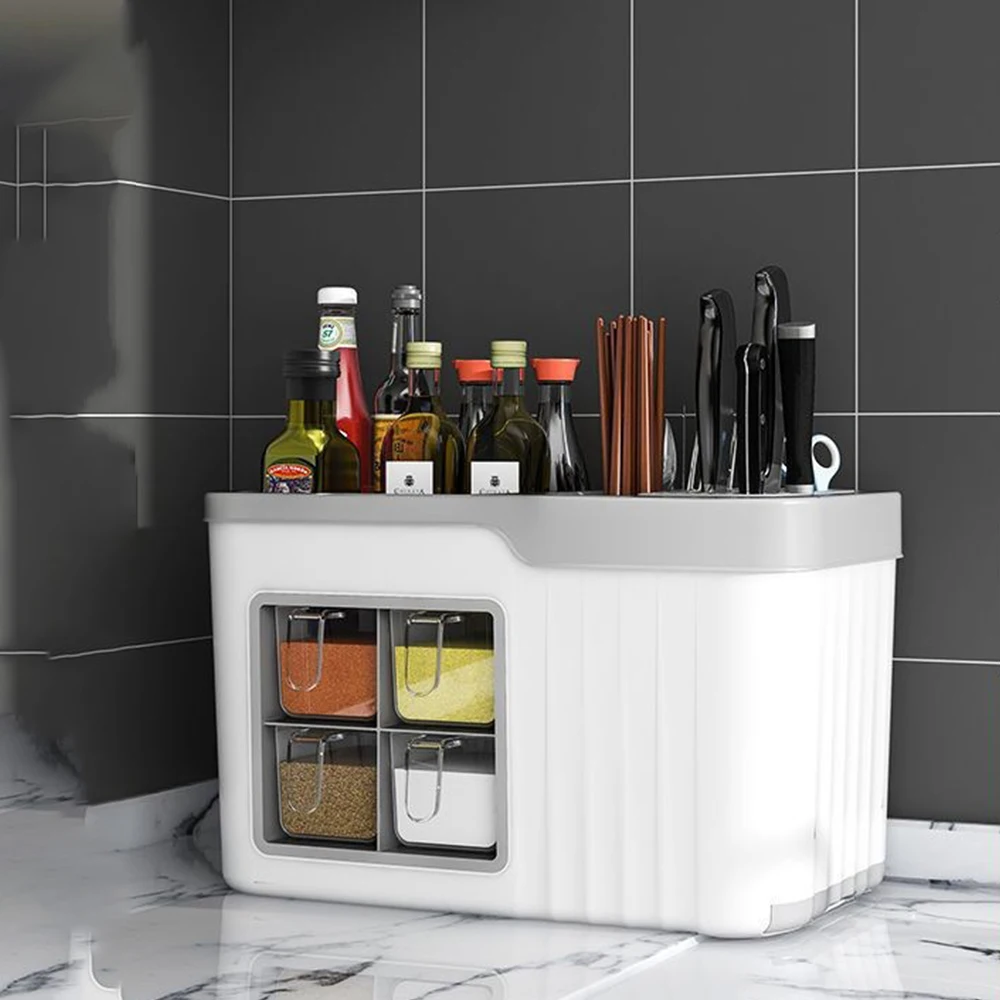 Title: Kitchen Storage Rack Seasoning Box Multifunctional Seasoning Box Cutting Tool Rack Chopsticks Box Oil Bottom Storage Rack