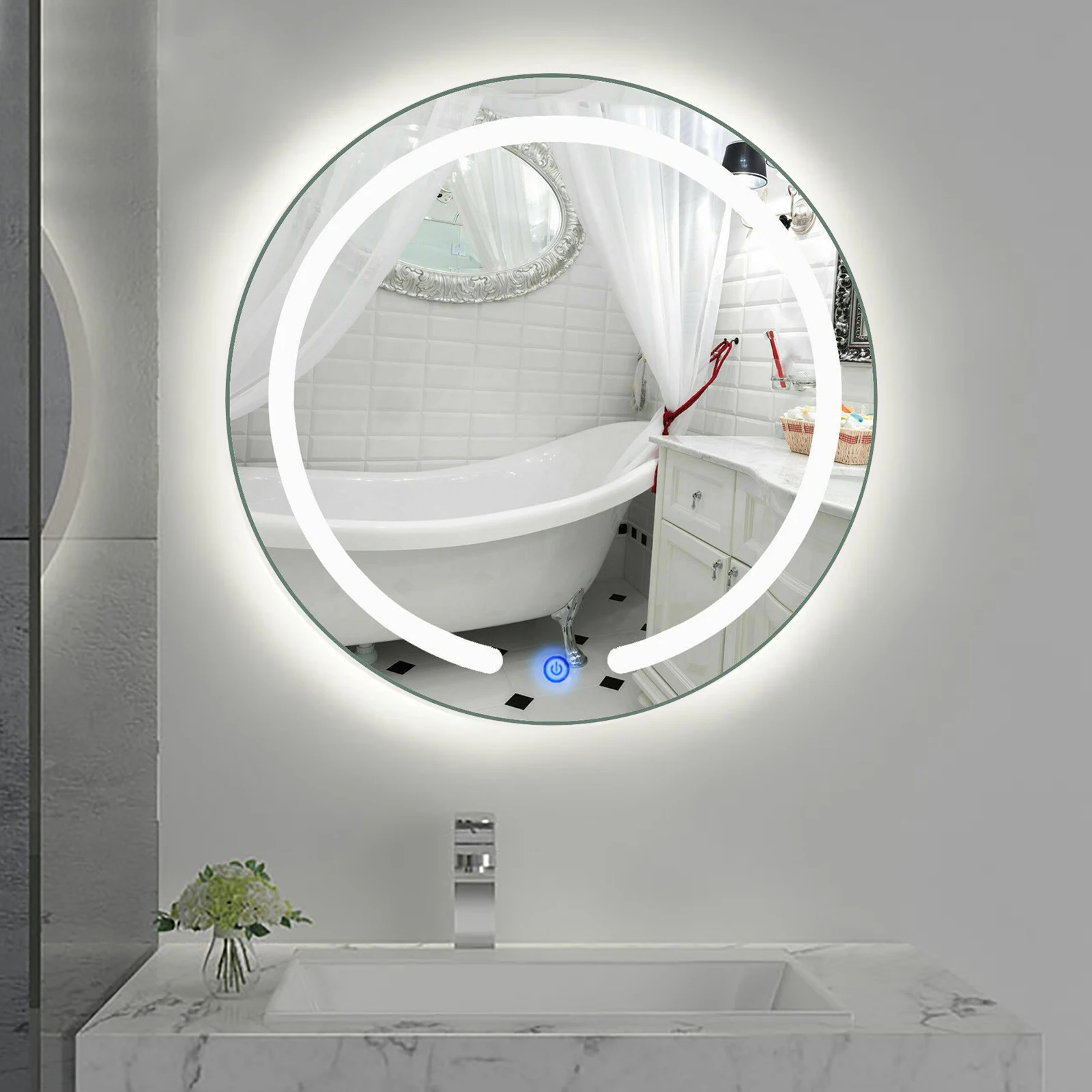 LUVODI Smart Illuminate Large Round Mirror for Bathroom Touch Screen Dimmable Anti-fog Bathroom LED Light Mirror