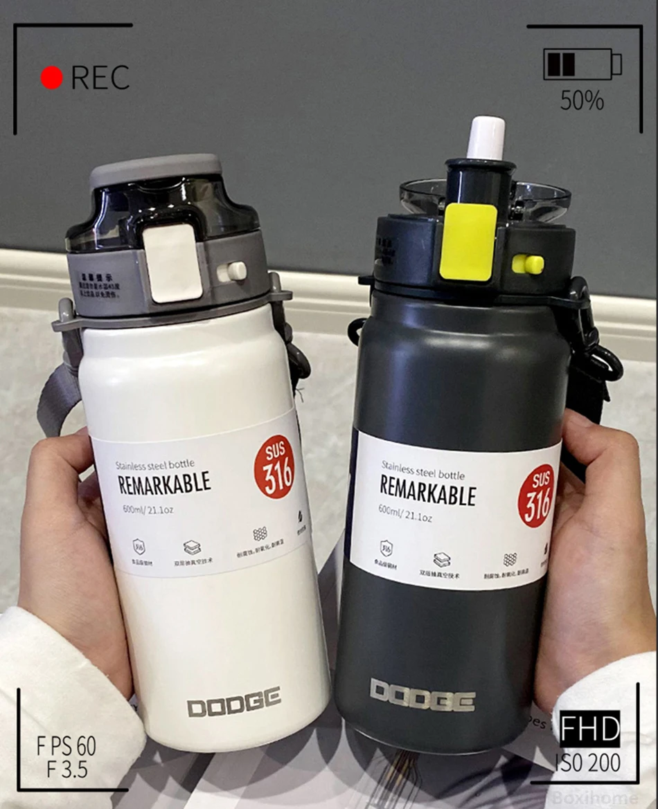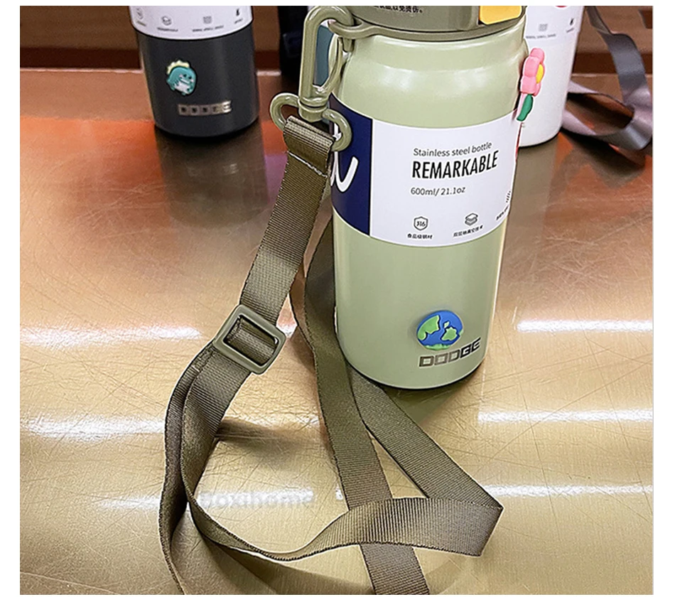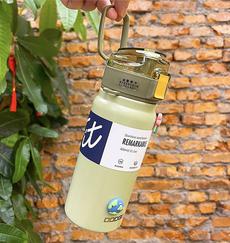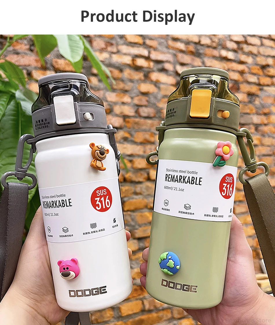 21oz 316 Stainless Steel Thermos Water Bottle For Girls With Straw Portable Strap Large Sports Thermal Insulated Vacuum Flask