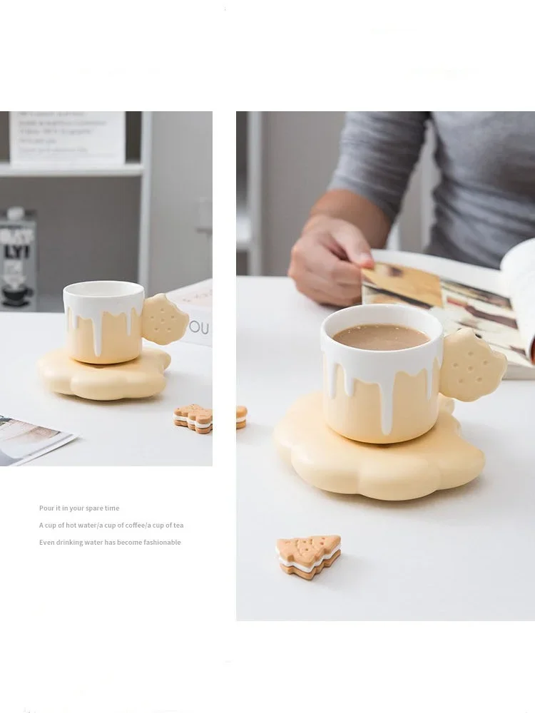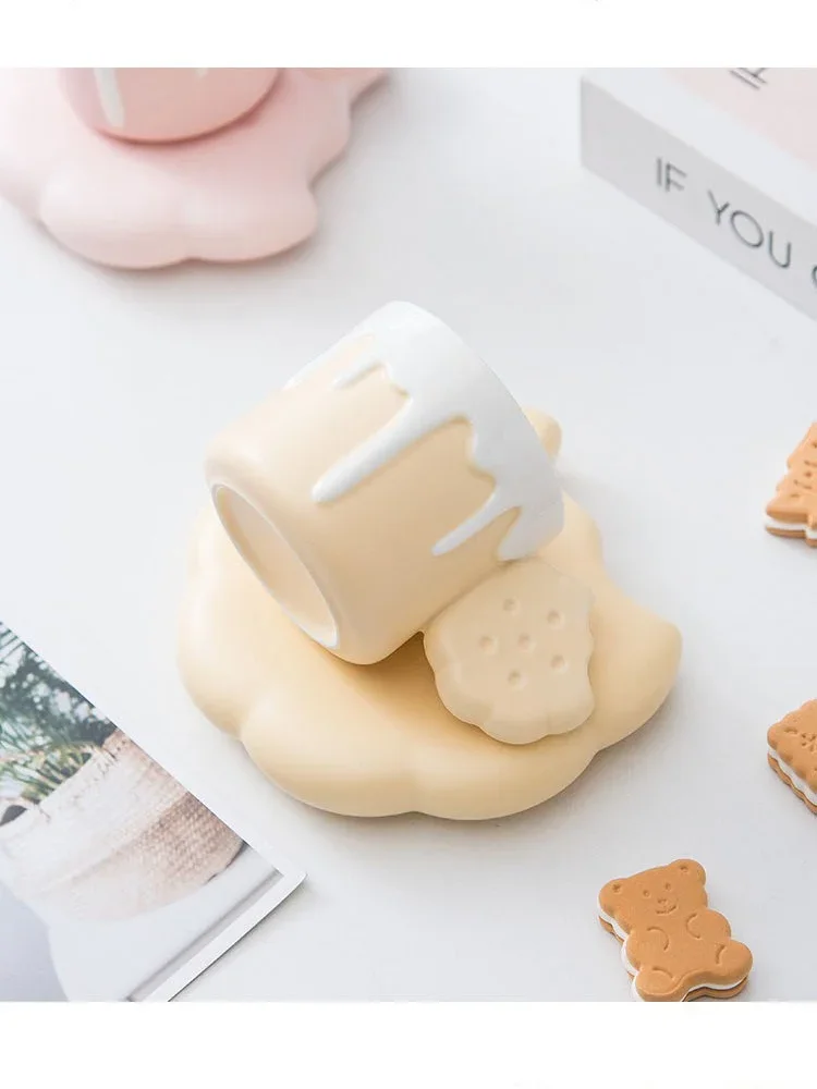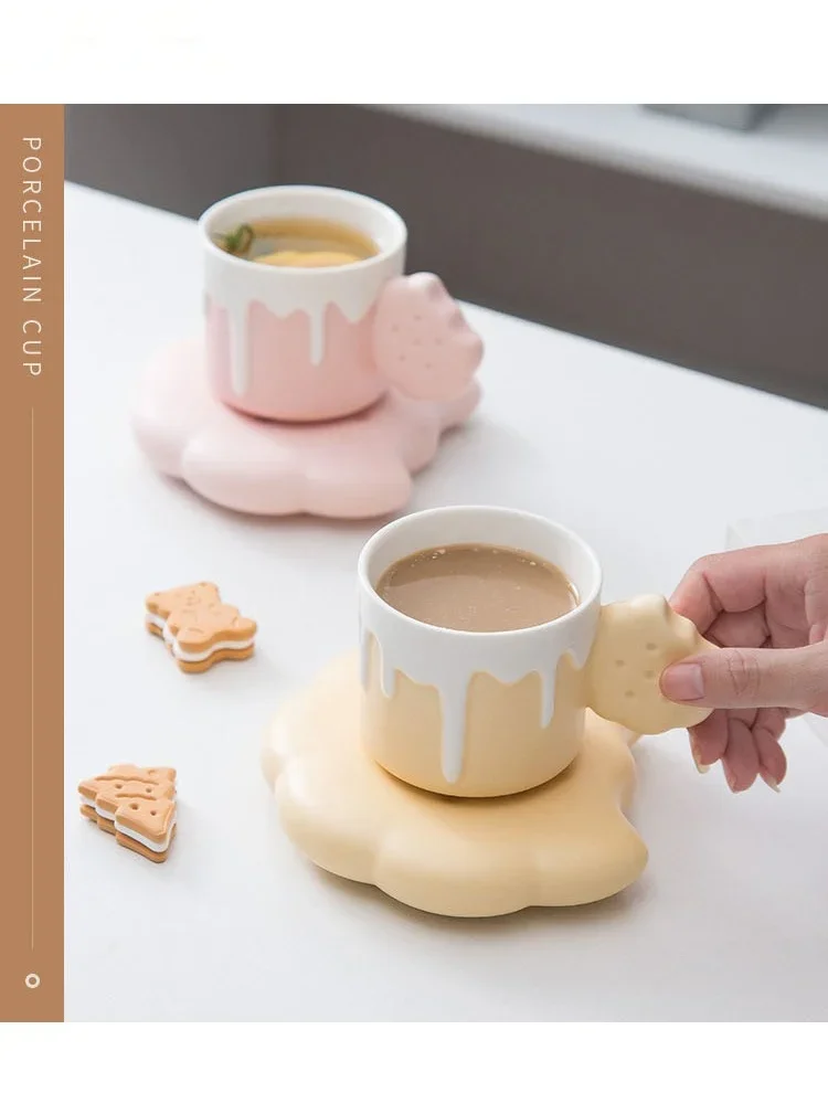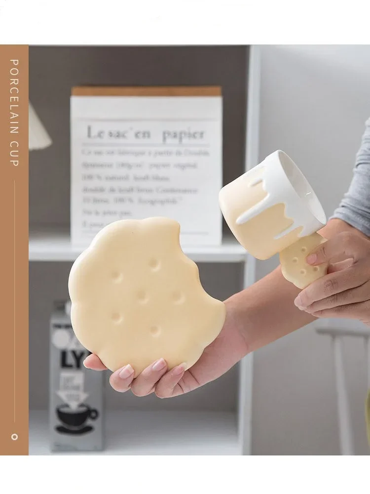 240ML Cute Cream Biscuit Ceramic Water Cup Creative Cartoon Household Breakfast Milk Mug Girls Office Design Coffee Cups