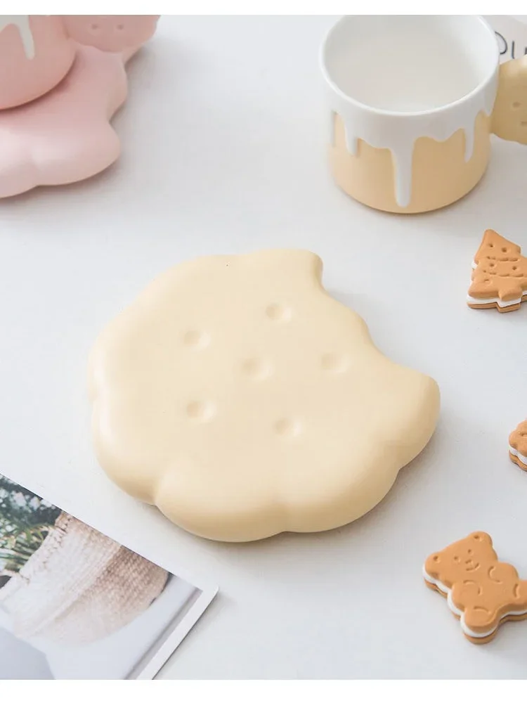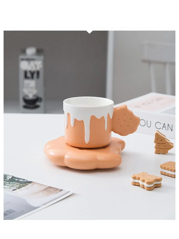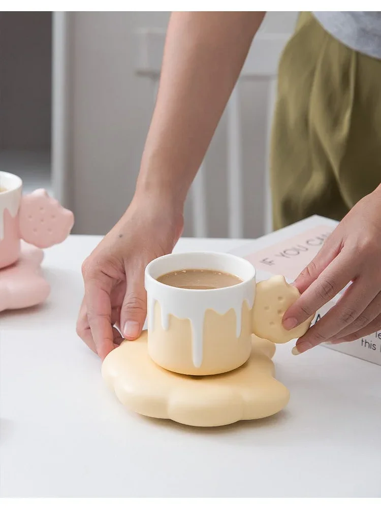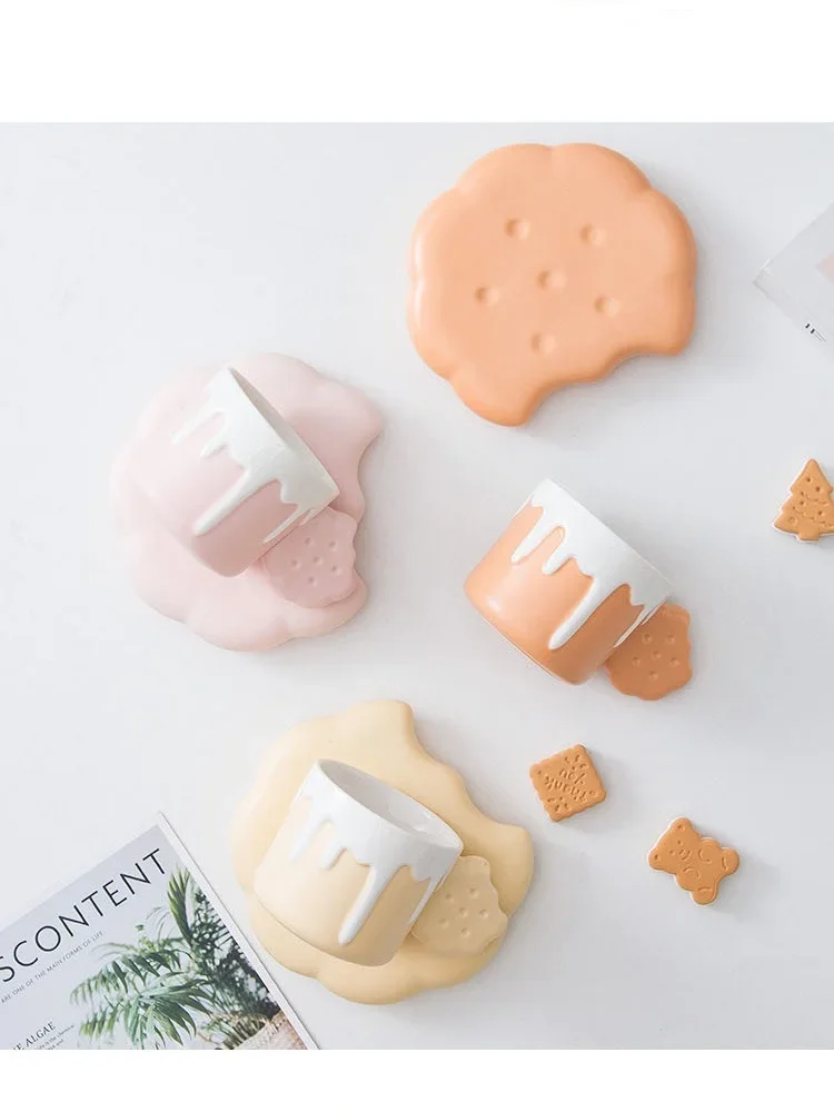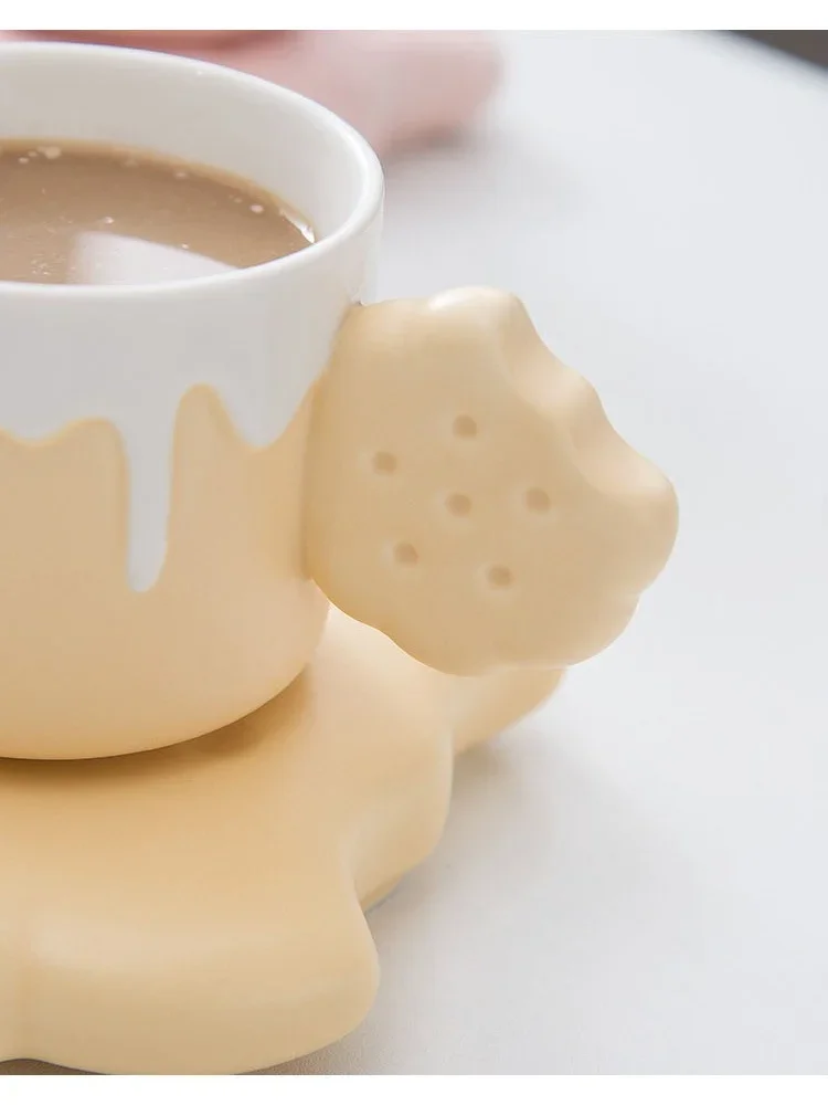 240ML Cute Cream Biscuit Ceramic Water Cup Creative Cartoon Household Breakfast Milk Mug Girls Office Design Coffee Cups