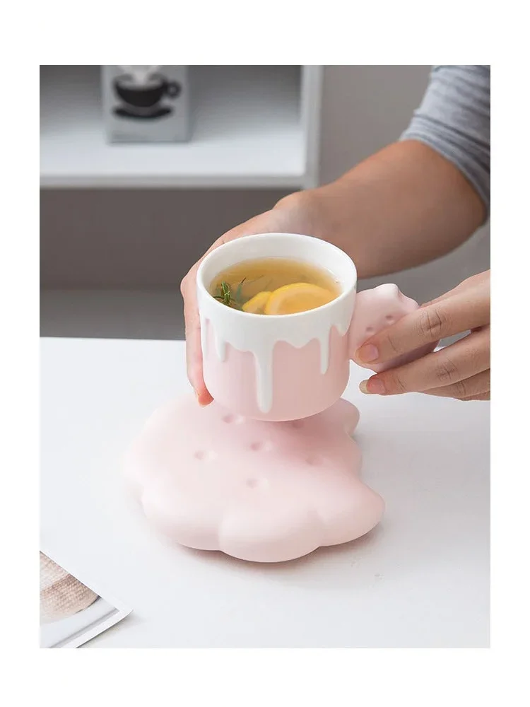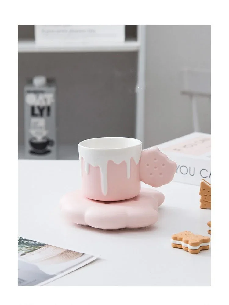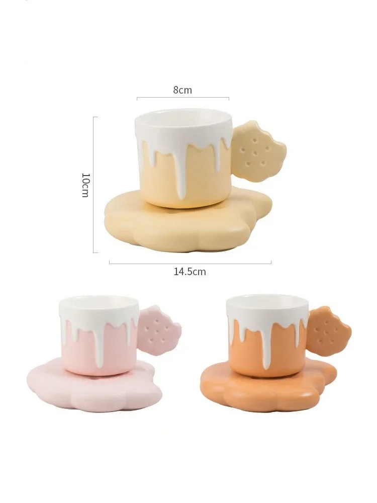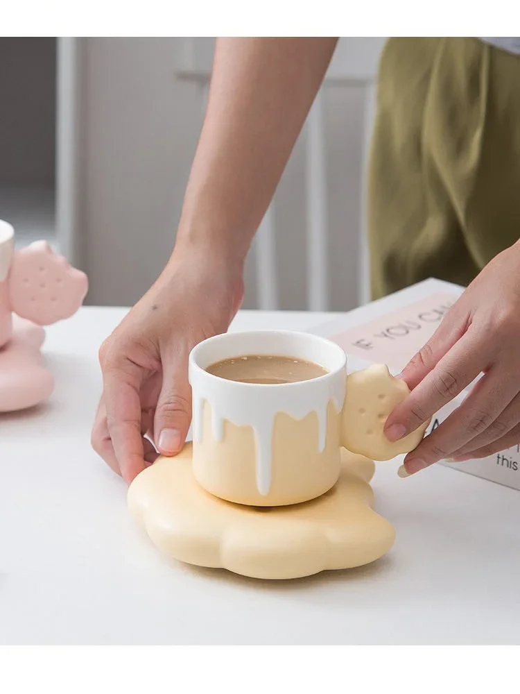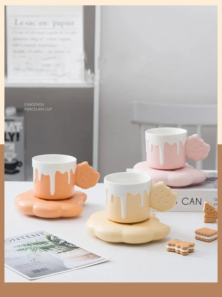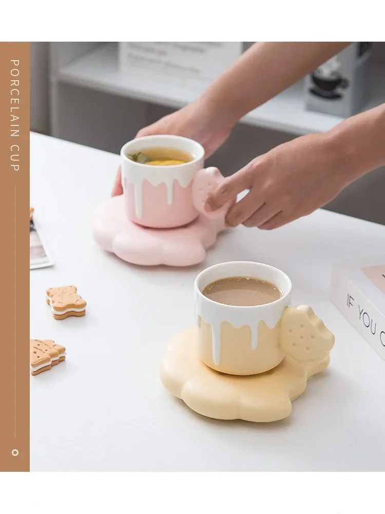 240ML Cute Cream Biscuit Ceramic Water Cup Creative Cartoon Household Breakfast Milk Mug Girls’ Office Design Coffee Cups