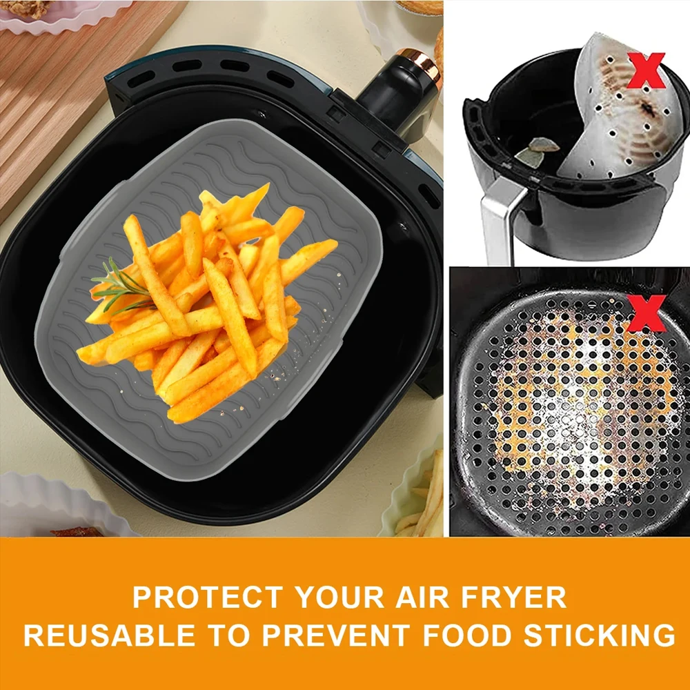 - 【Easy to Clean & Dishwasher Safe】Our upgraded air fryer silicone liners are dishwasher safe and easy to clean. Unique pattern design makes residue oil easily flow out when cleaning. Soft & flexible silicone make cleaning job easy.Say goodbye to cleaning headaches and enjoy long-lasting durability.