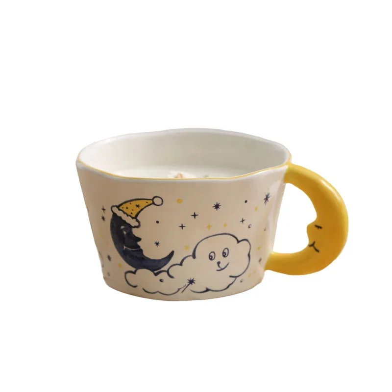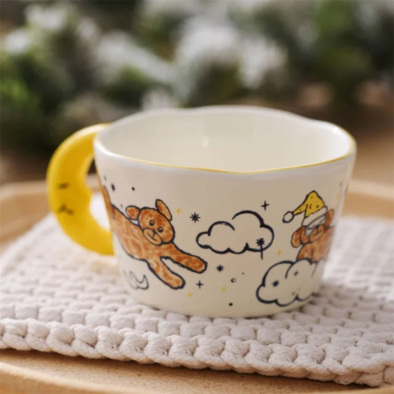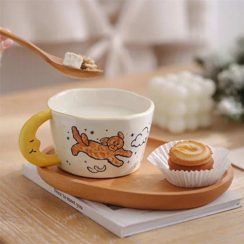 300ml Cute Cartoon Ladybug Dog Pattern Coffee Cup Creative moon handle Ceramic Mug Breakfast Milk Cups For Kids Birthday Gift