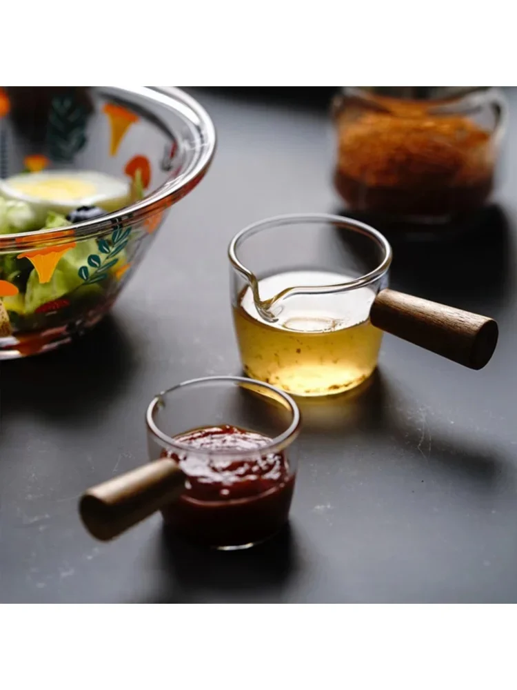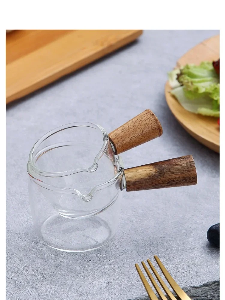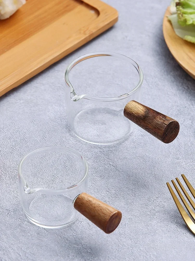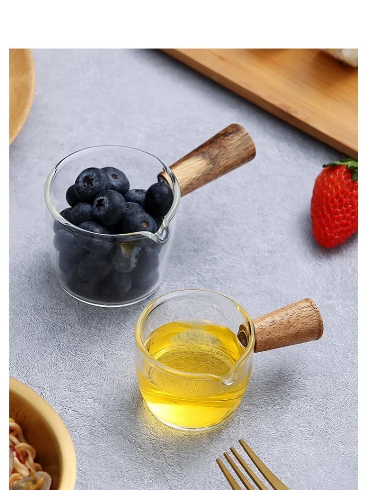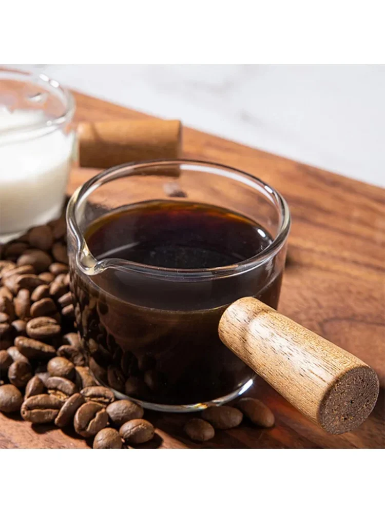 50/100ml Glass Measuring Cup Wooden Handle Espresso Cup Single Spout Milk Cup Coffee Supplies Transparent Kitchen Measuring