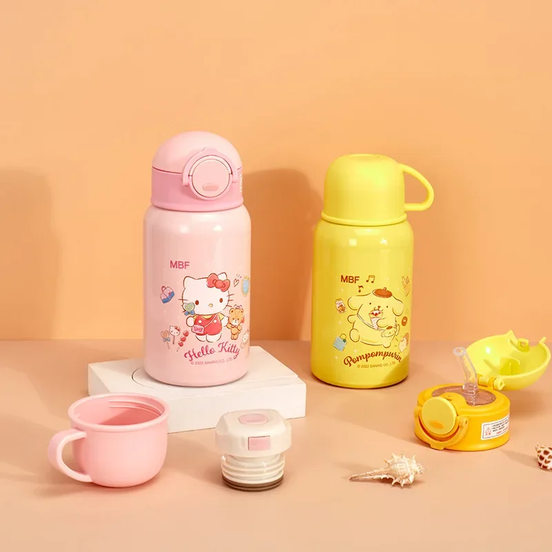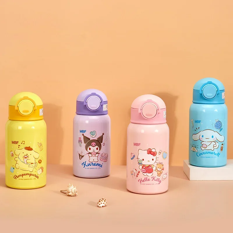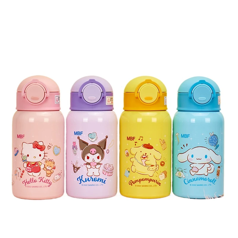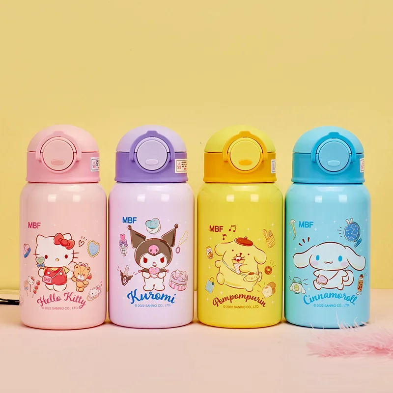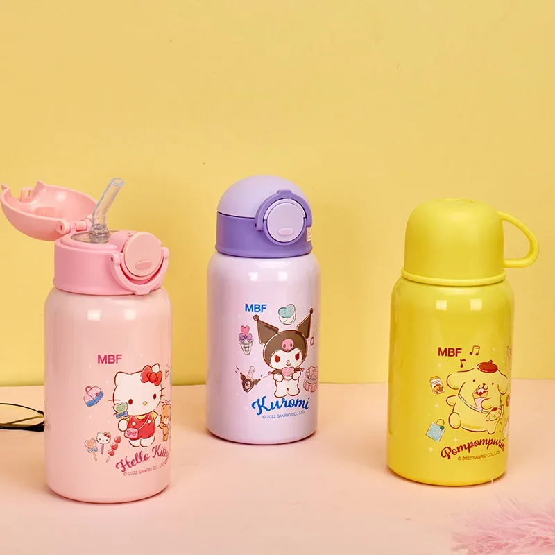 500ML MINISO Sanrio Kuromi Cinnamoroll Mymelody Kawaii Anime Kids Thermos Bottle 316 Stainless Steel Three Lids Straw Cups Gifts