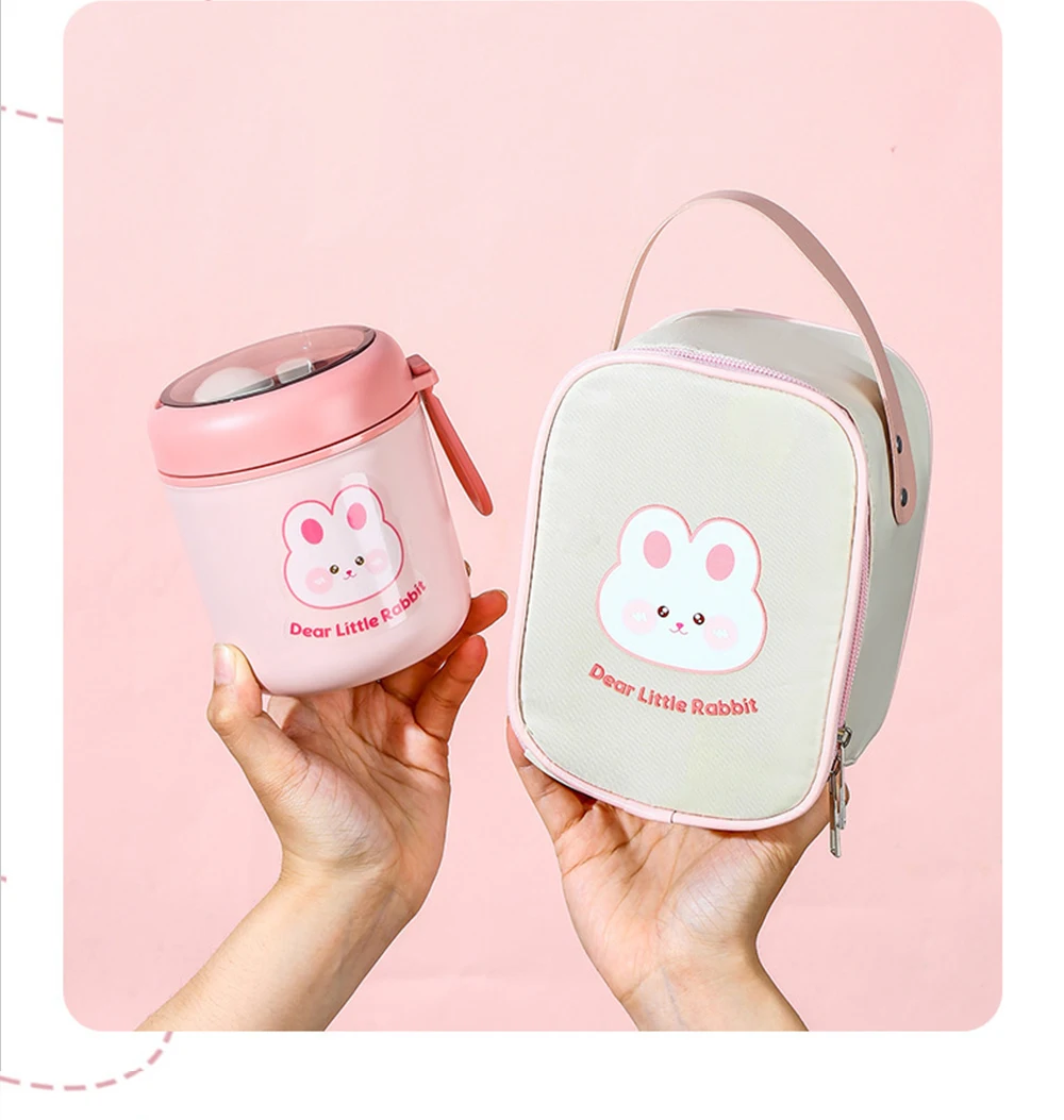 530ml Stainless Steel Lunch Box Cute Rabbit Bear Food Thermal Jar Insulated Soup Cup Container Bento Box For School Children