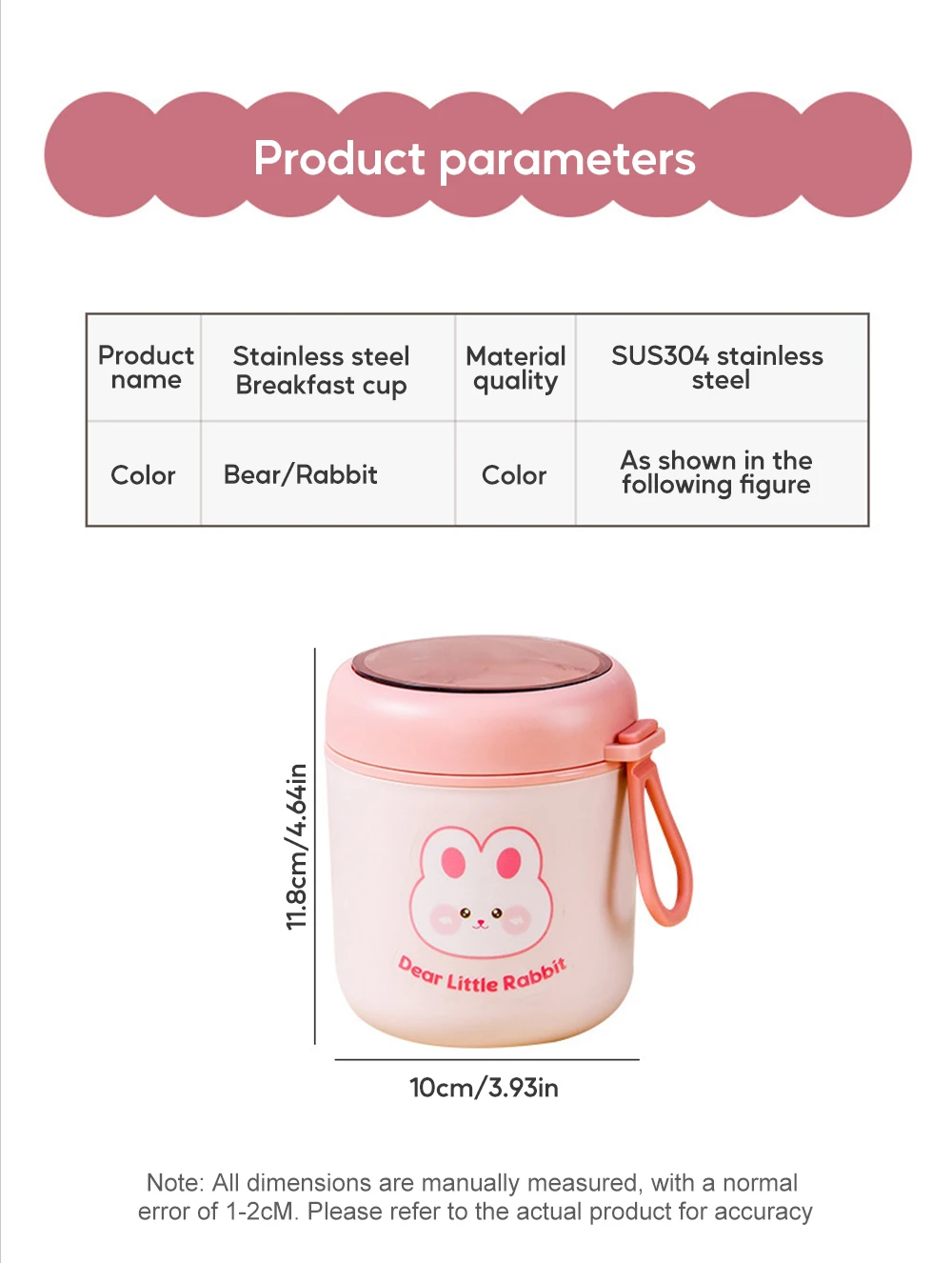 Be the first to review “530ml Stainless Steel Lunch Box Cute Rabbit Bear Food Thermal Jar Insulated Soup Cup Container Bento Box For School Children” Cancel reply