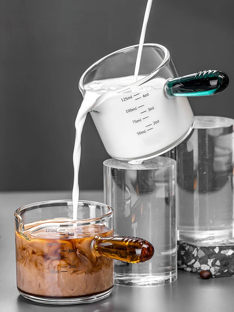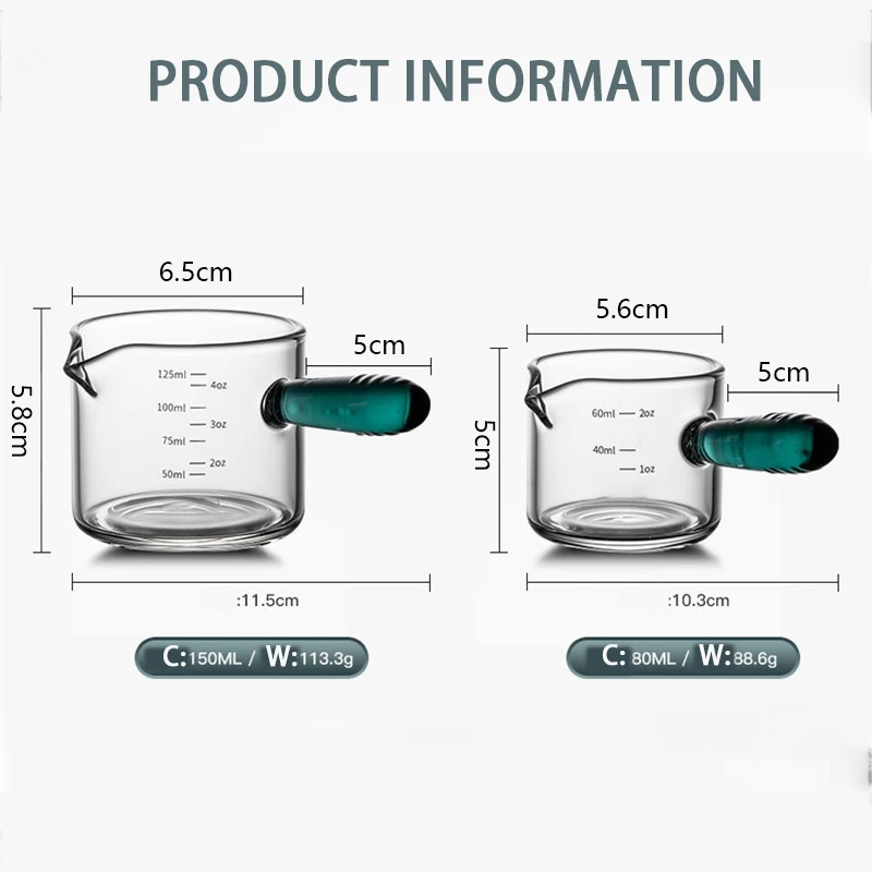80/150ml Colour Glass Handle Espresso Measuring Cup Vshape Mouth Milk Jug Coffee Supplies Thickened Glass Kitchen Measure Mug