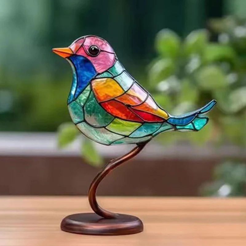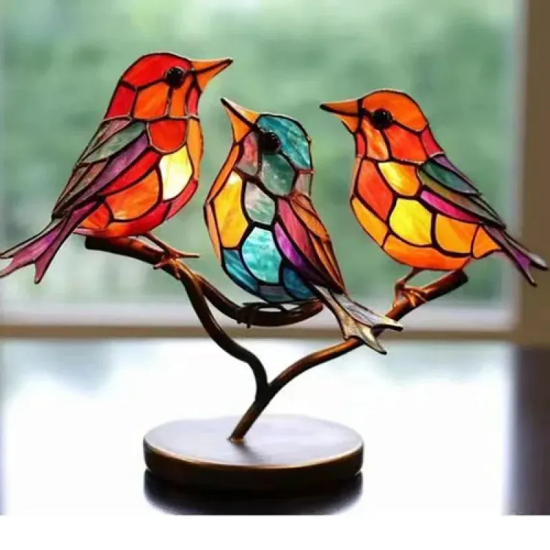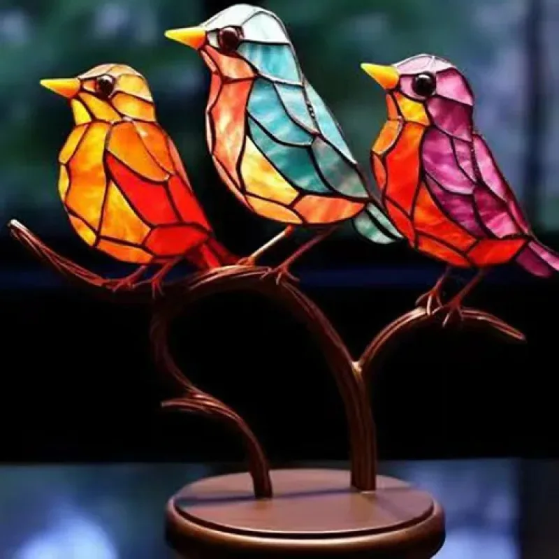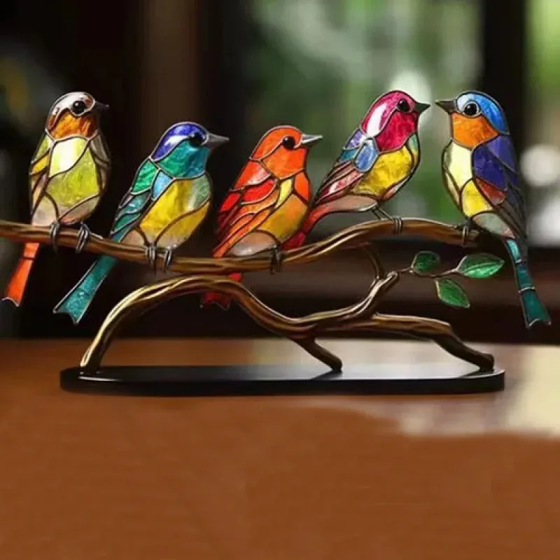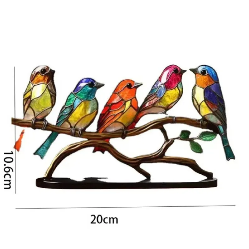Acrylic Birds On Branch Desktop Ornaments Multicolor Stained Acrylic Birds Decorations Figurine Animal Interior Art Decor