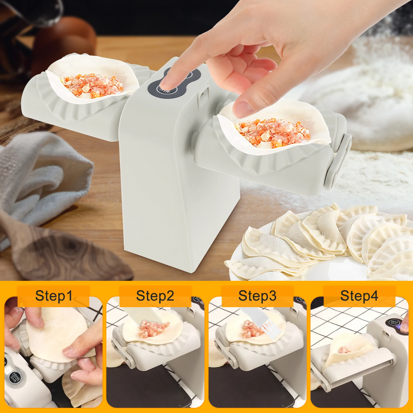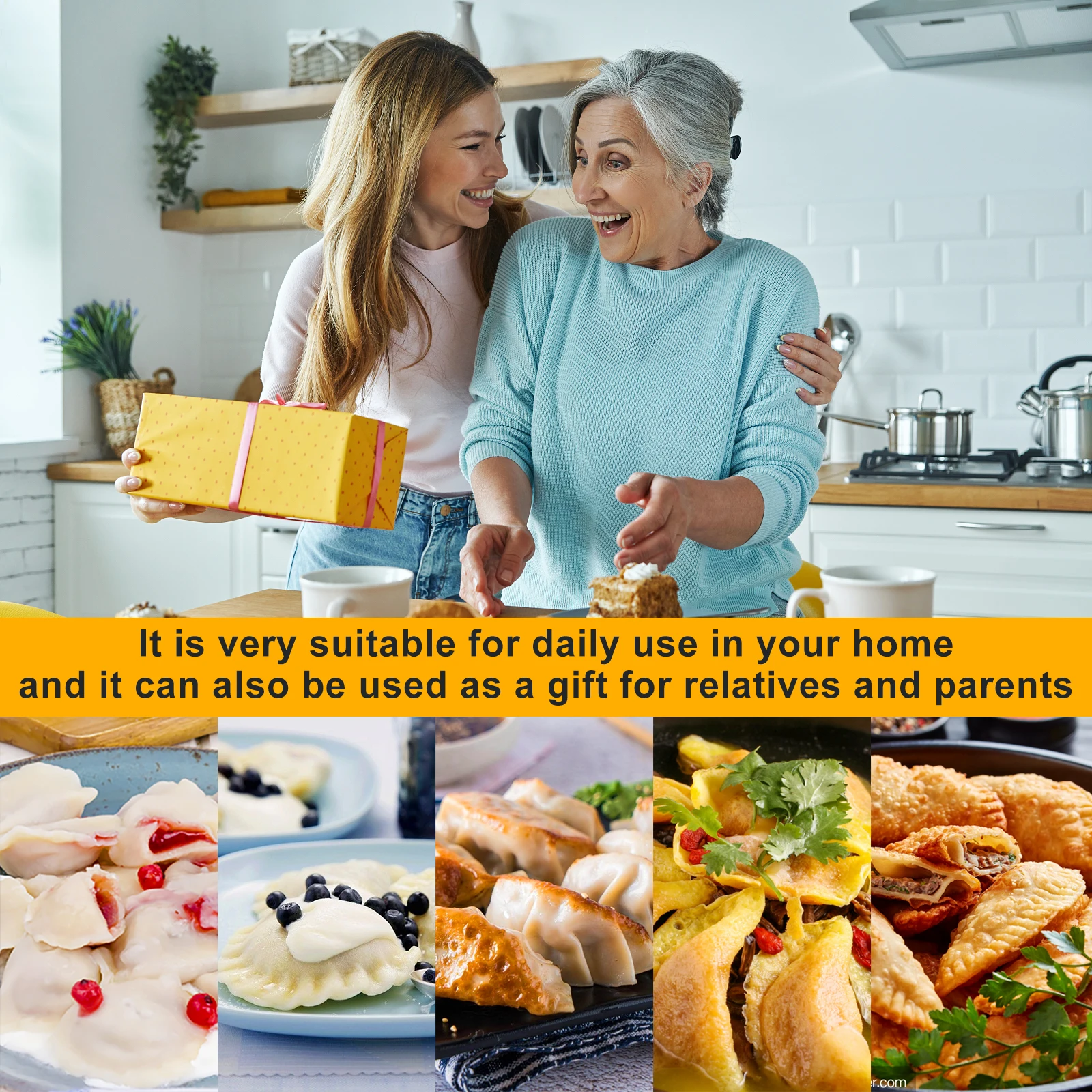 [Easy to Use and Clean] This electric dumpling maker is easy to use. Just place the dumpling skin on the electric dumpling maker and add rightful meat filling. Press the button, it will form a delicate dumpling right away. The electric dumpling maker is easy to clean and it is not easy to hide dirt and grime.