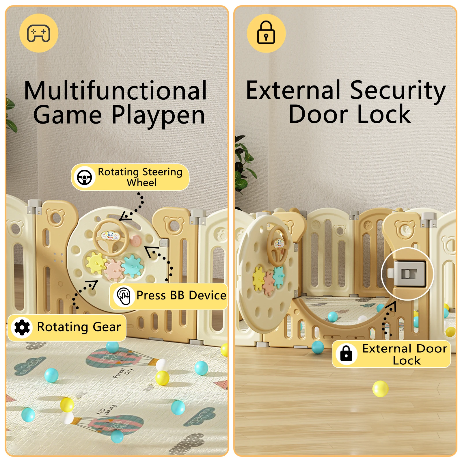 Baby Fence Baby Crawl Toddler Fence Safety Play Yard Home Indoor Foldable Baby Playpen with door Baby Playground Baby Barrier