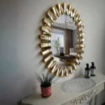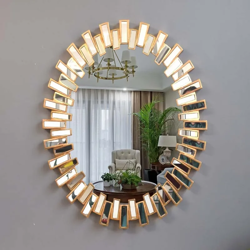 Living Room Fireplace Mirror Wall Hanging Background Decoration Octagonal Gold Makeup Mirror Bathroom Decoration Art Accessories