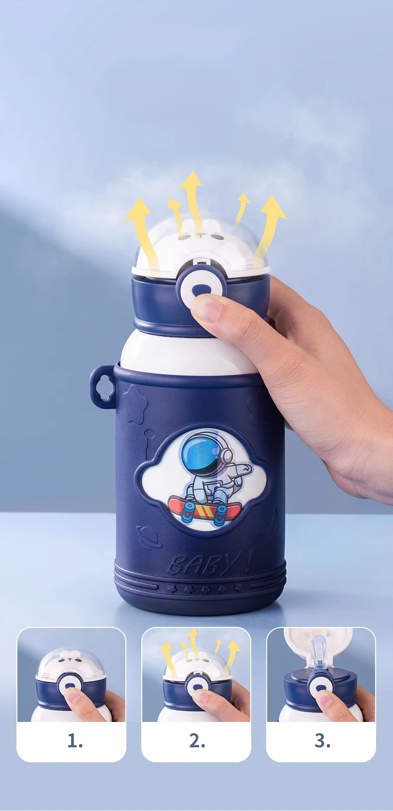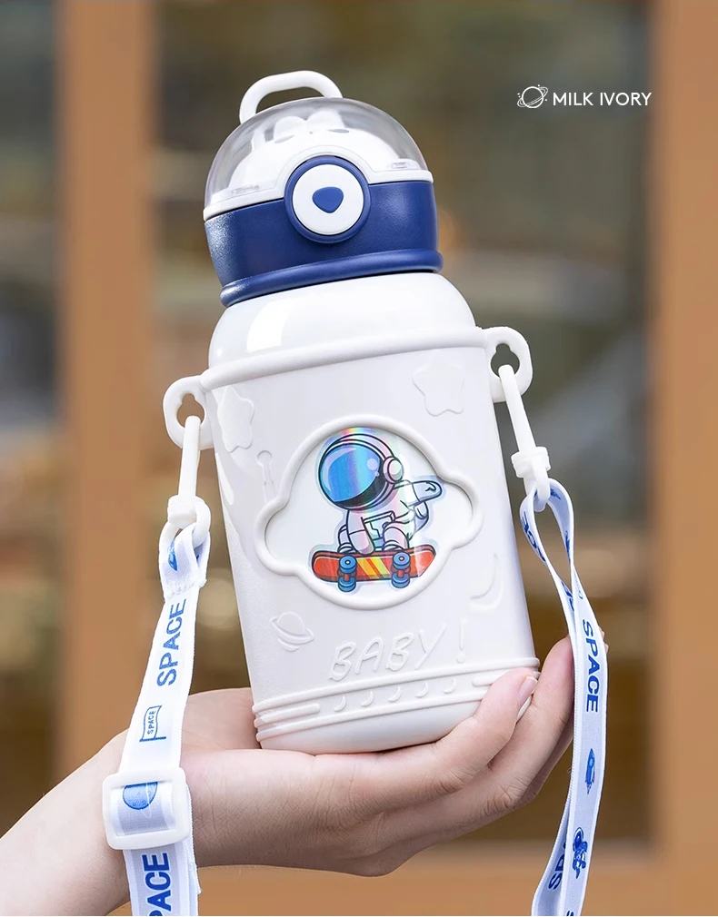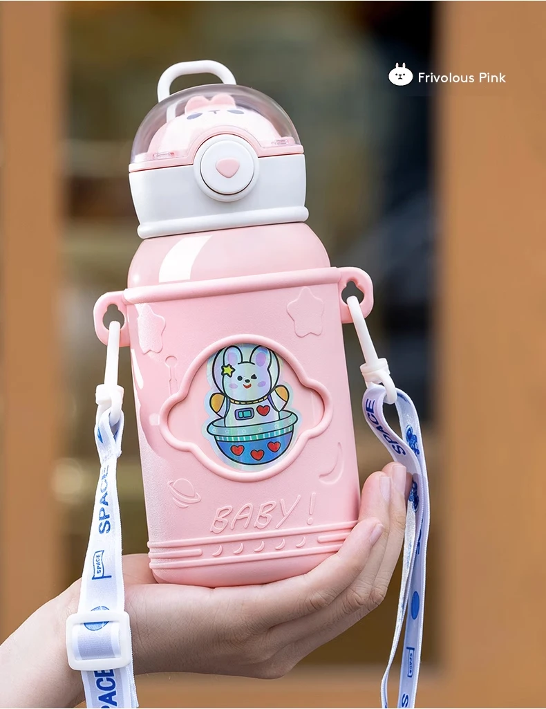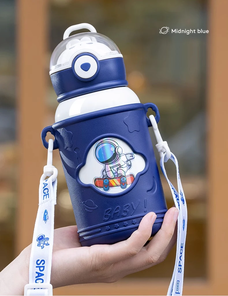 Children’ Cartoon Straw Water Thermos Bottle Portable Sealed LeakProof Keep Warm Mug Stainless Steel Kids’ Outdoor Thermal Cups