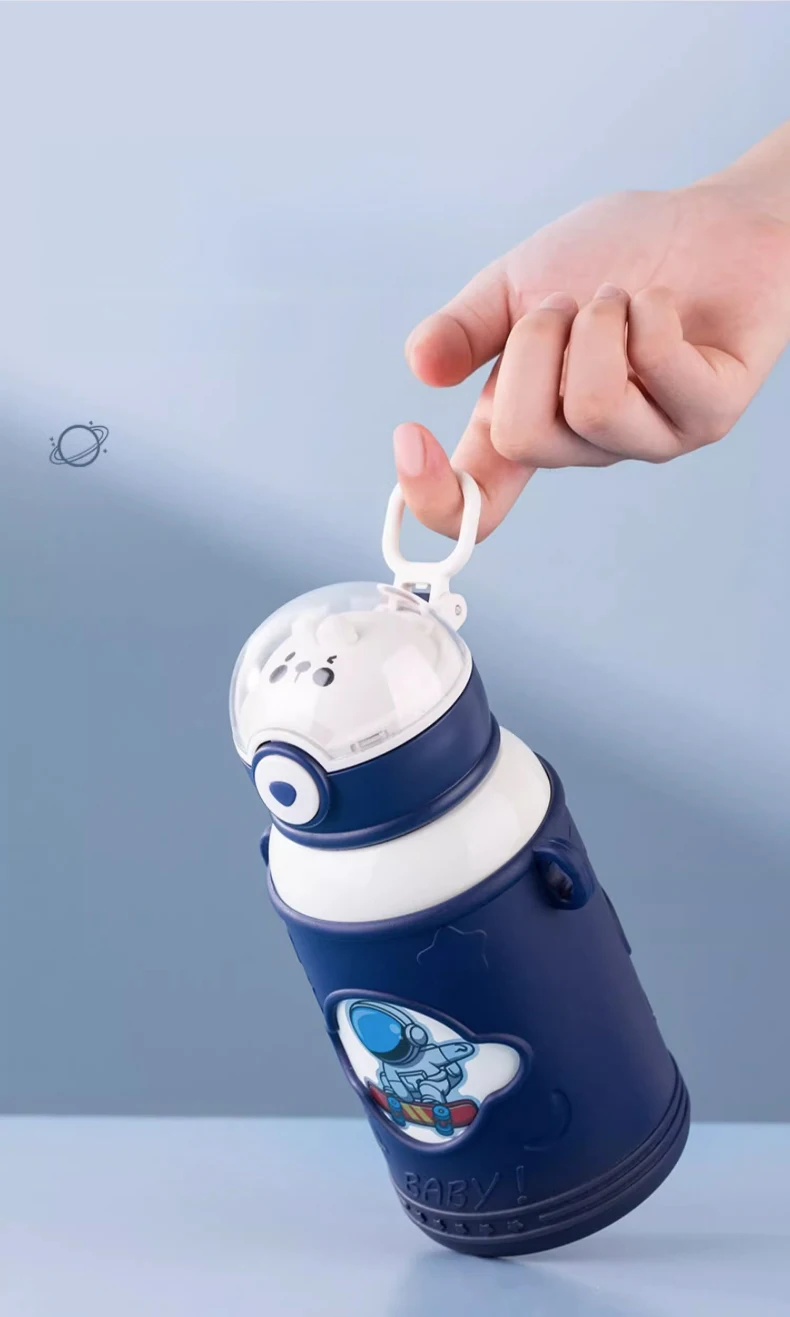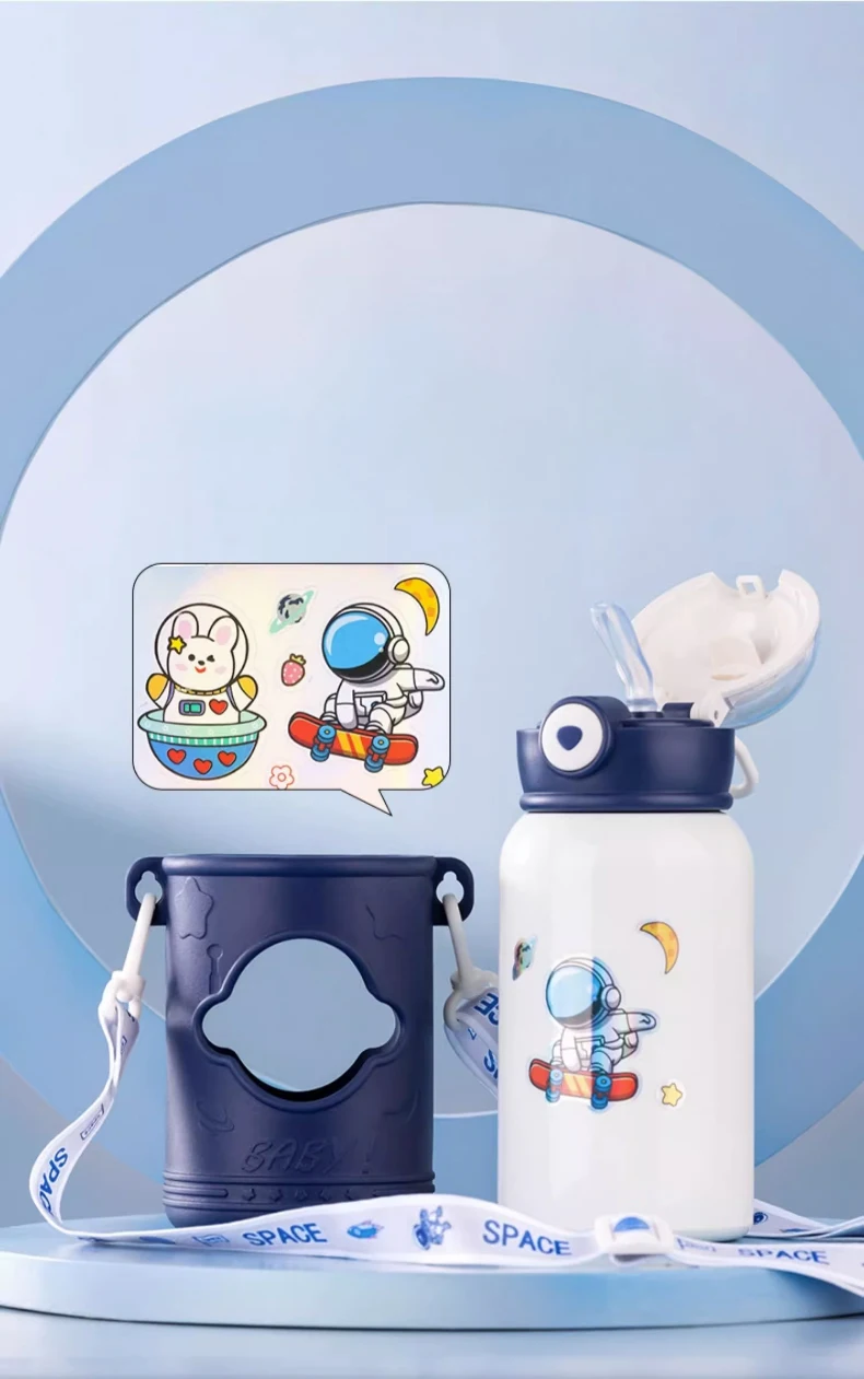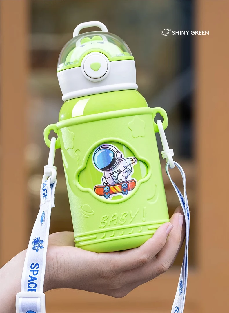 Children’ Cartoon Straw Water Thermos Bottle Portable Sealed LeakProof Keep Warm Mug Stainless Steel Kids’ Outdoor Thermal Cups
