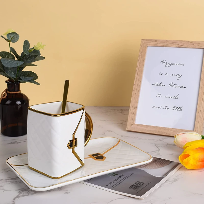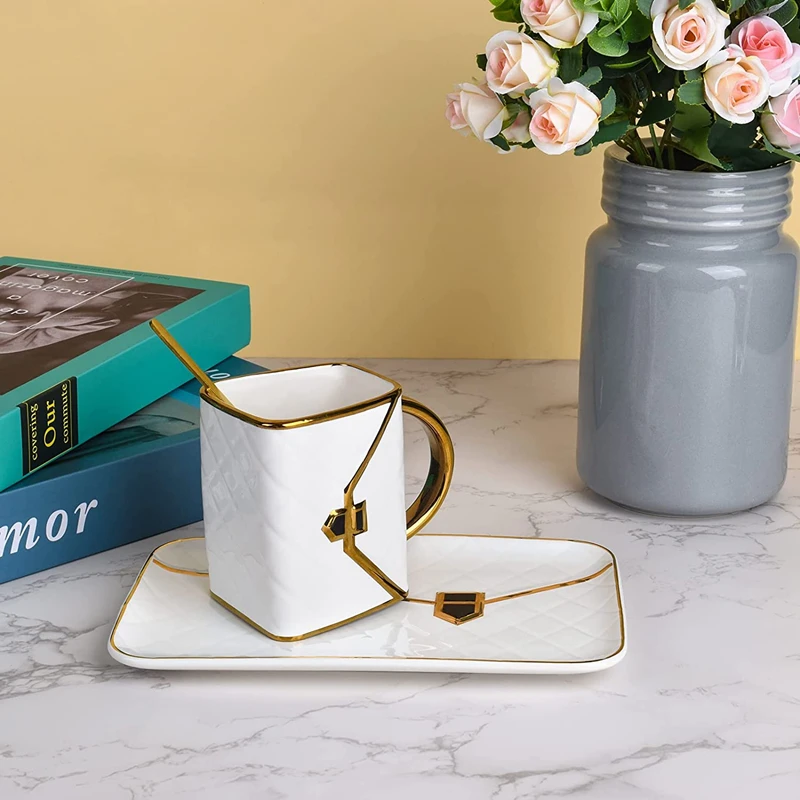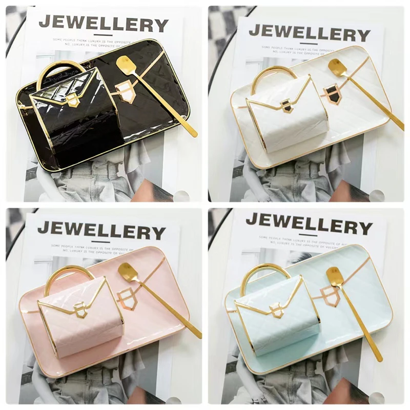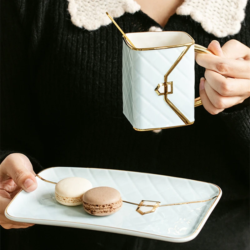 Creative Bag Dim Sum Coffee Cup Business Coffee Mugs with Tray High Quality Mug Home Office Breakfast Drinkware Christmas Gifts