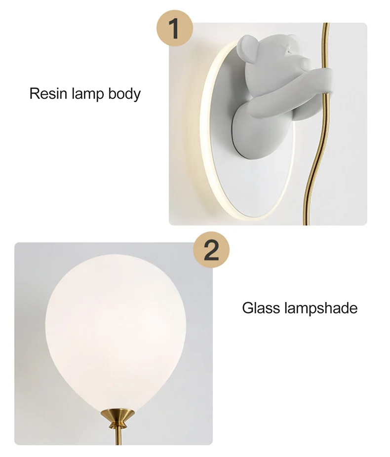 Creative bear wall light kawaii cartoon balloon light for children’s room bedroom bedside wall lamp artistic decor ambiance lamp