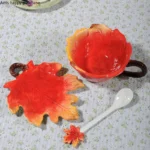 Size: Cup 14.3×11.1×5.7cm, saucer 15.6x12x1.9cm, spoon 13.9×3.5×1.9cm