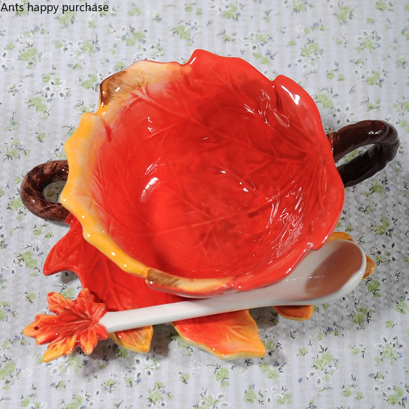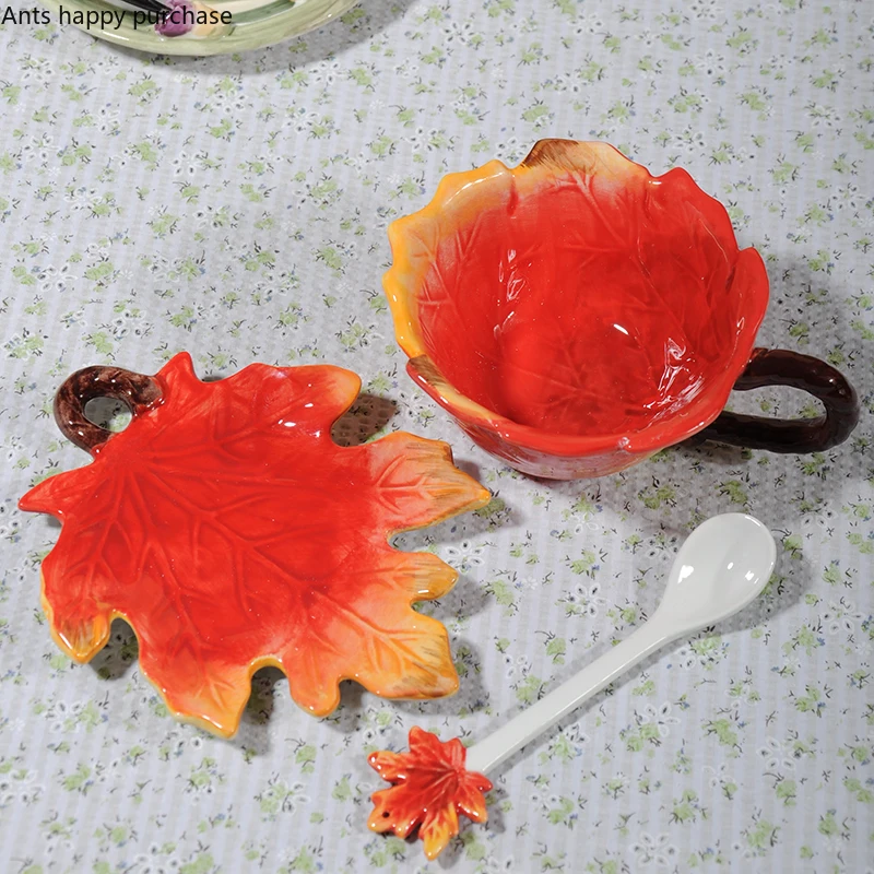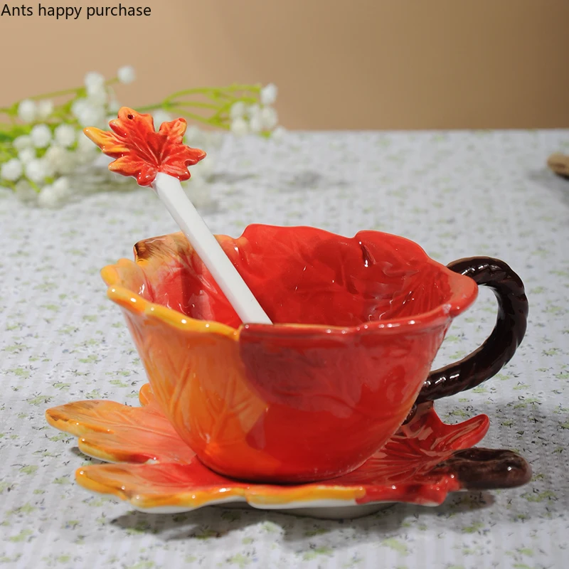 Product Title: Creative ceramic cup with saucer spoon Maple leaf Coffee cup set Flower tea cups Water cups Tea mug Coffee mug Milk mugs gift