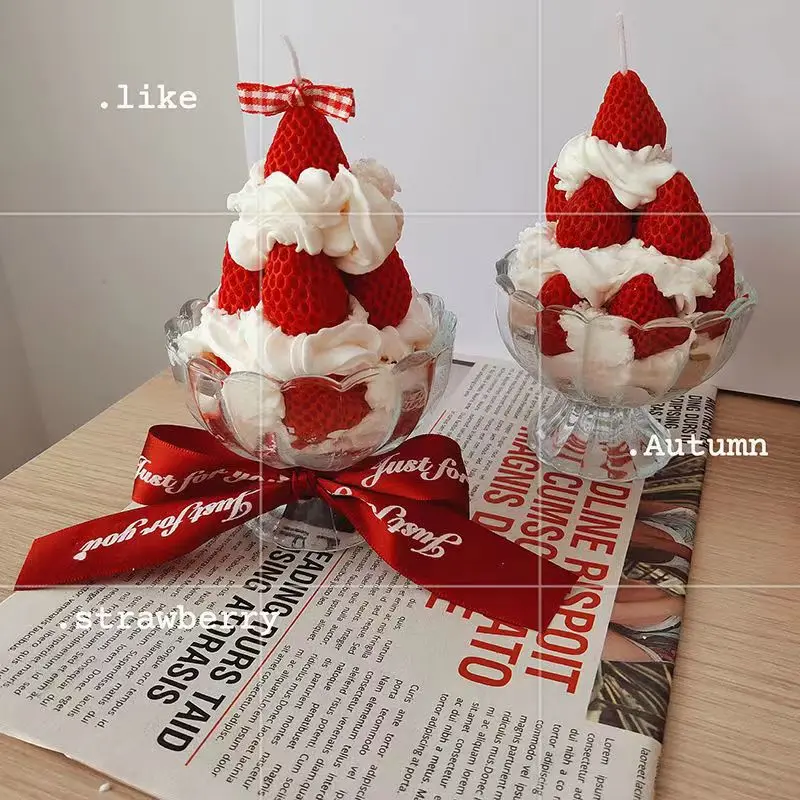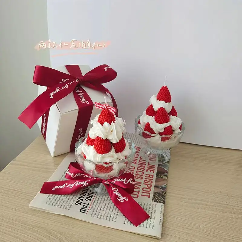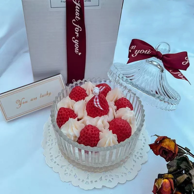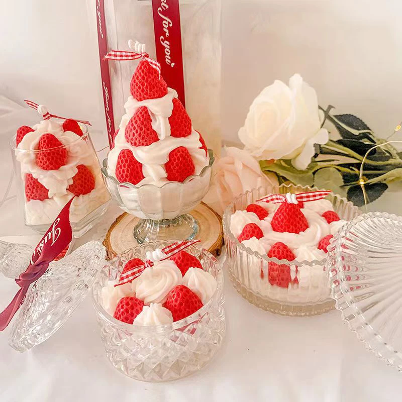 Creative Creamy Strawberry Melaleuca Cake Scented Candles Handmade Decorative Aromatic Candles With Cups Girls gift candles