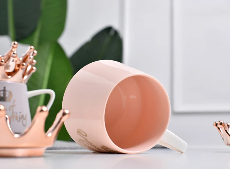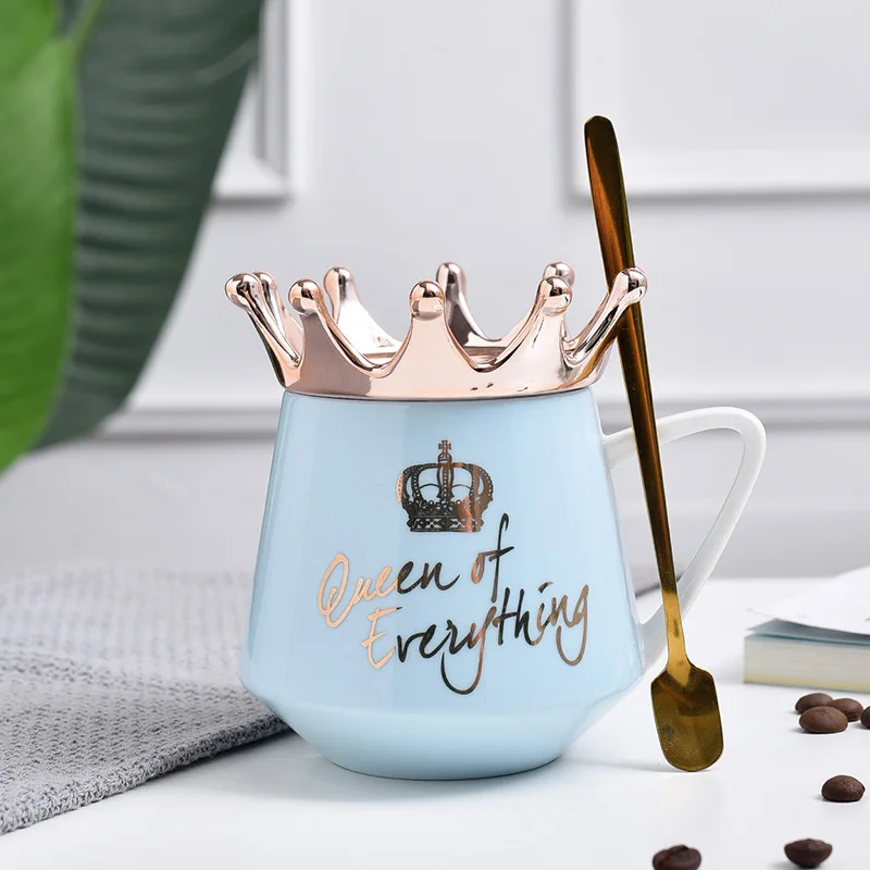 Creative Crown Mug,Multi Color mugs with spoon lid Coffee Milk Cup Cute Ceramic Mug 300ml Capacity Water Cups X-Mas Gift