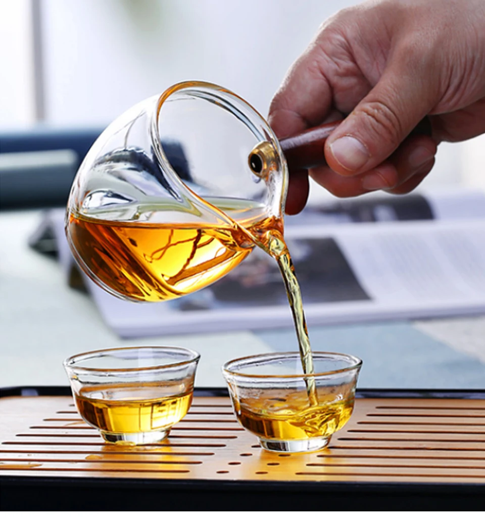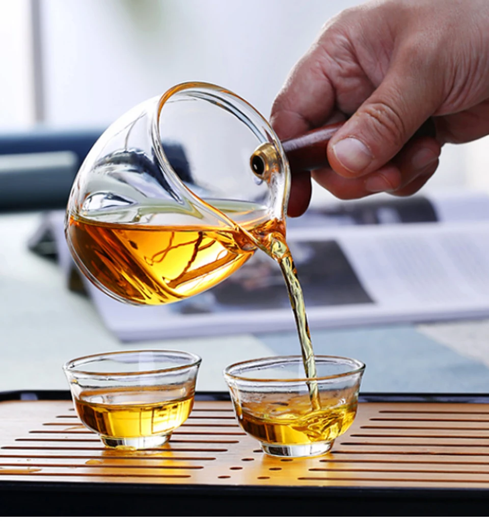 Creative Kung Fu Tea Tool Heat-resistant Glass Wood Handle Fair Cup Transparent Tea Dispenser Office Kettle Turkey Coffee Bot