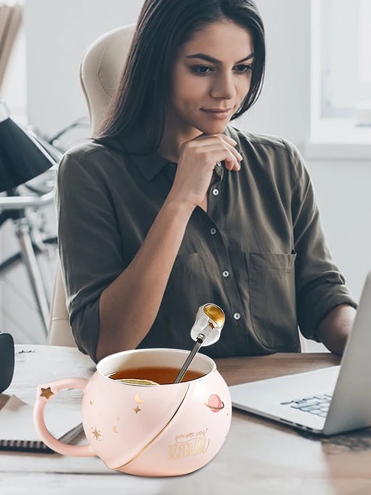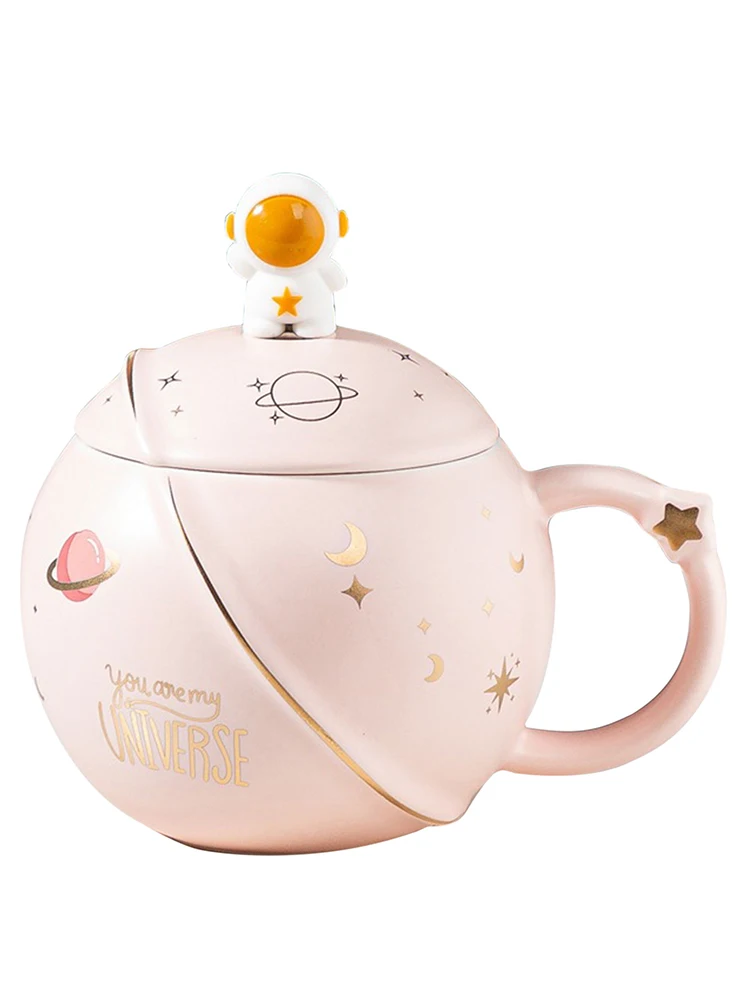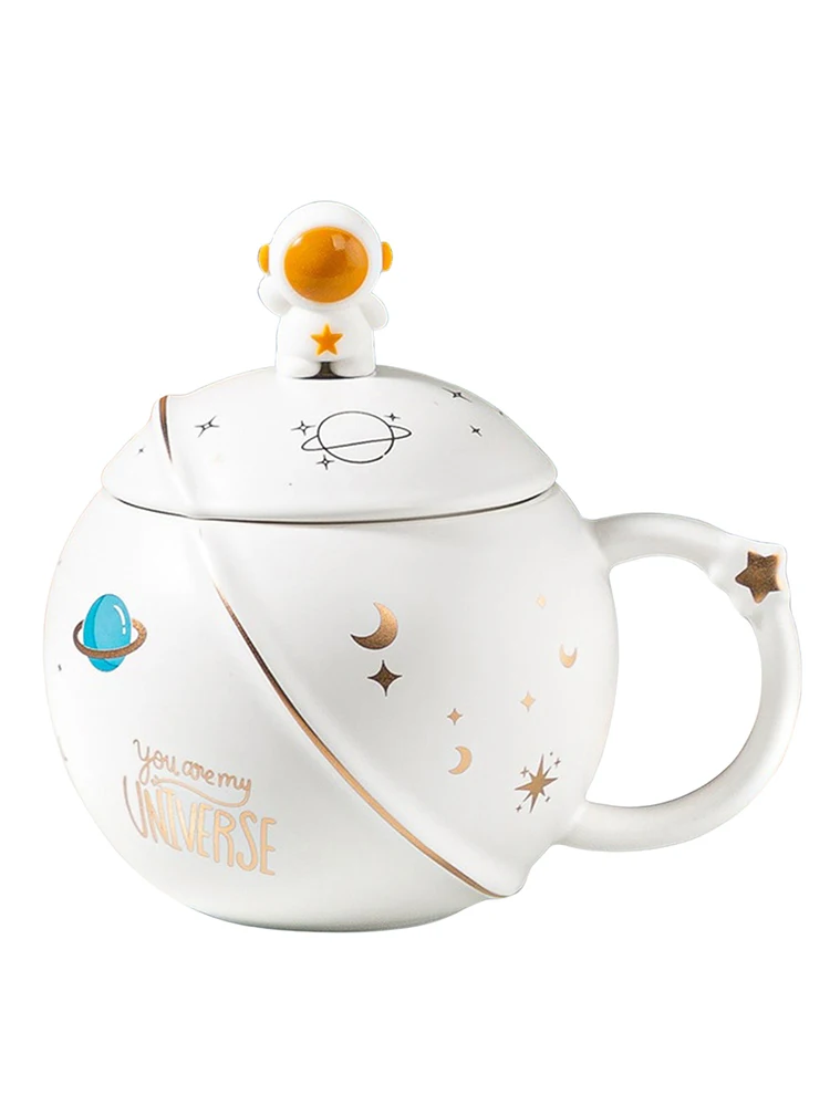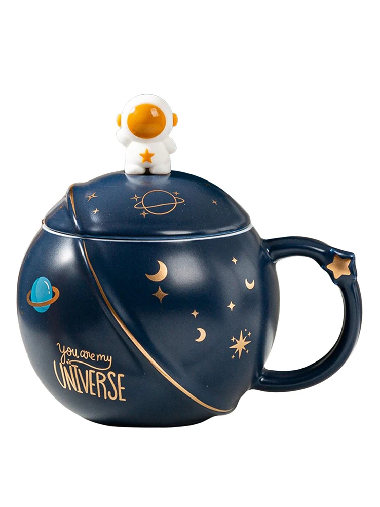 Cute Space Solar System Ceramics Coffee Mug Planet Mug Coffee Milk Tea Cup Lovely Astronaut Mugs With Spoon Lid