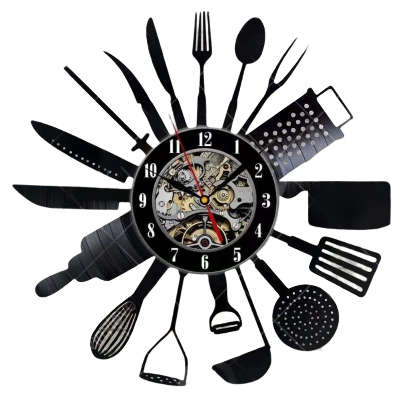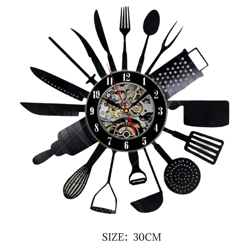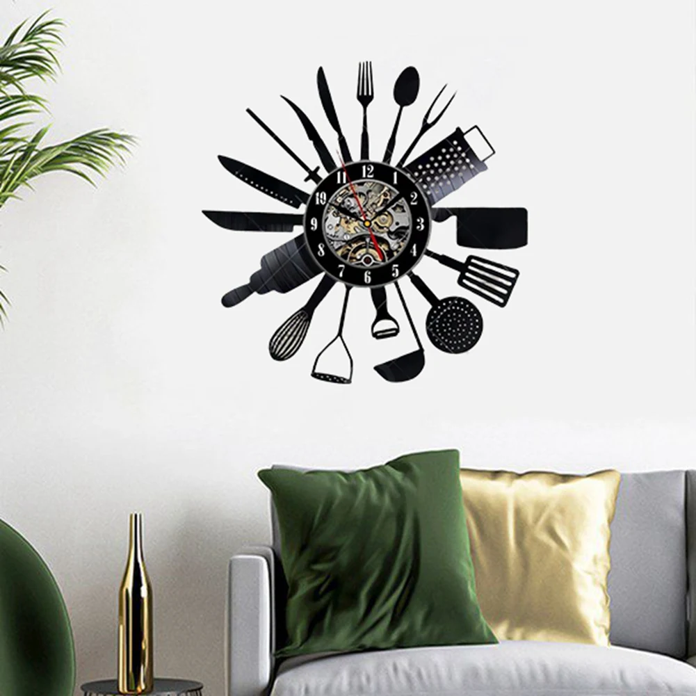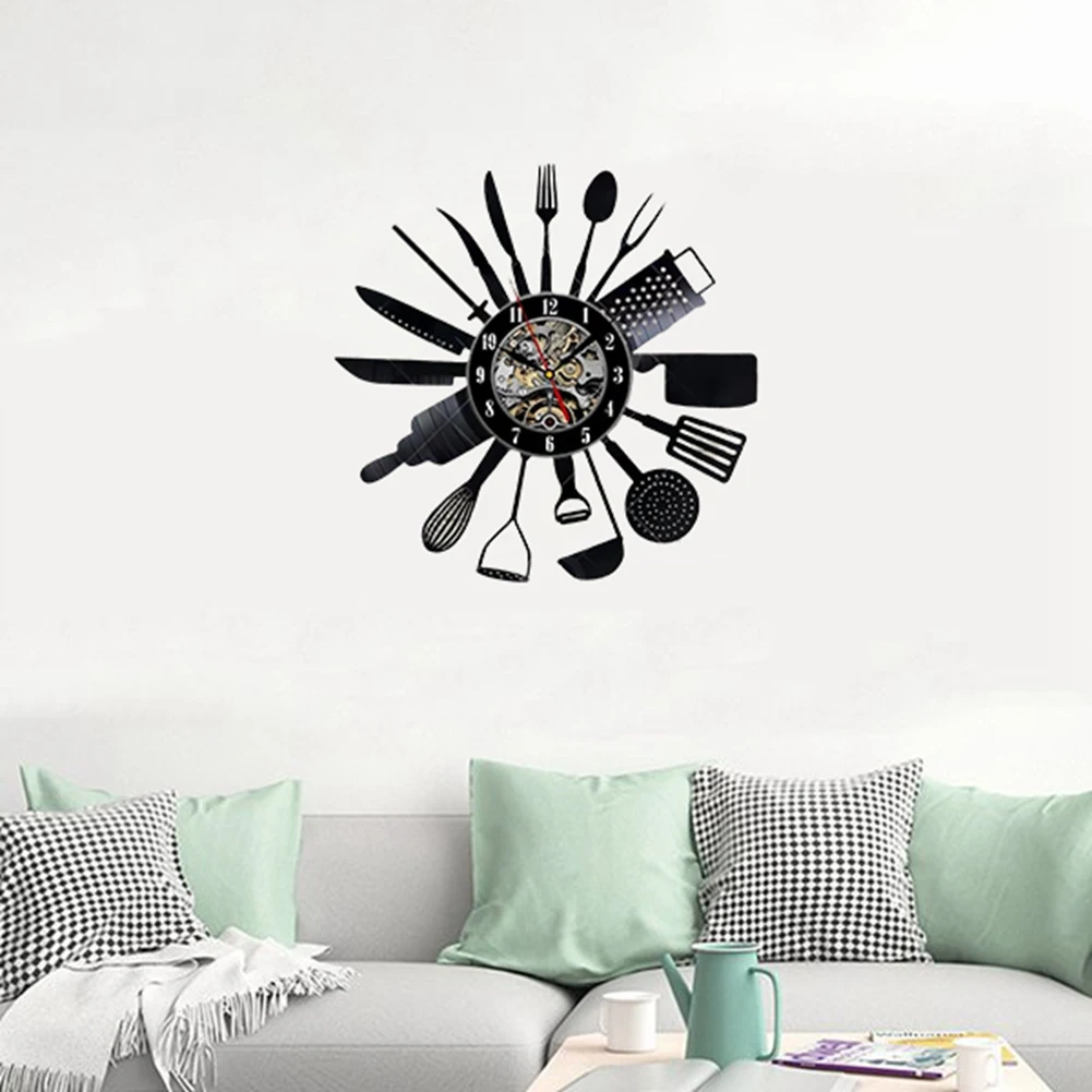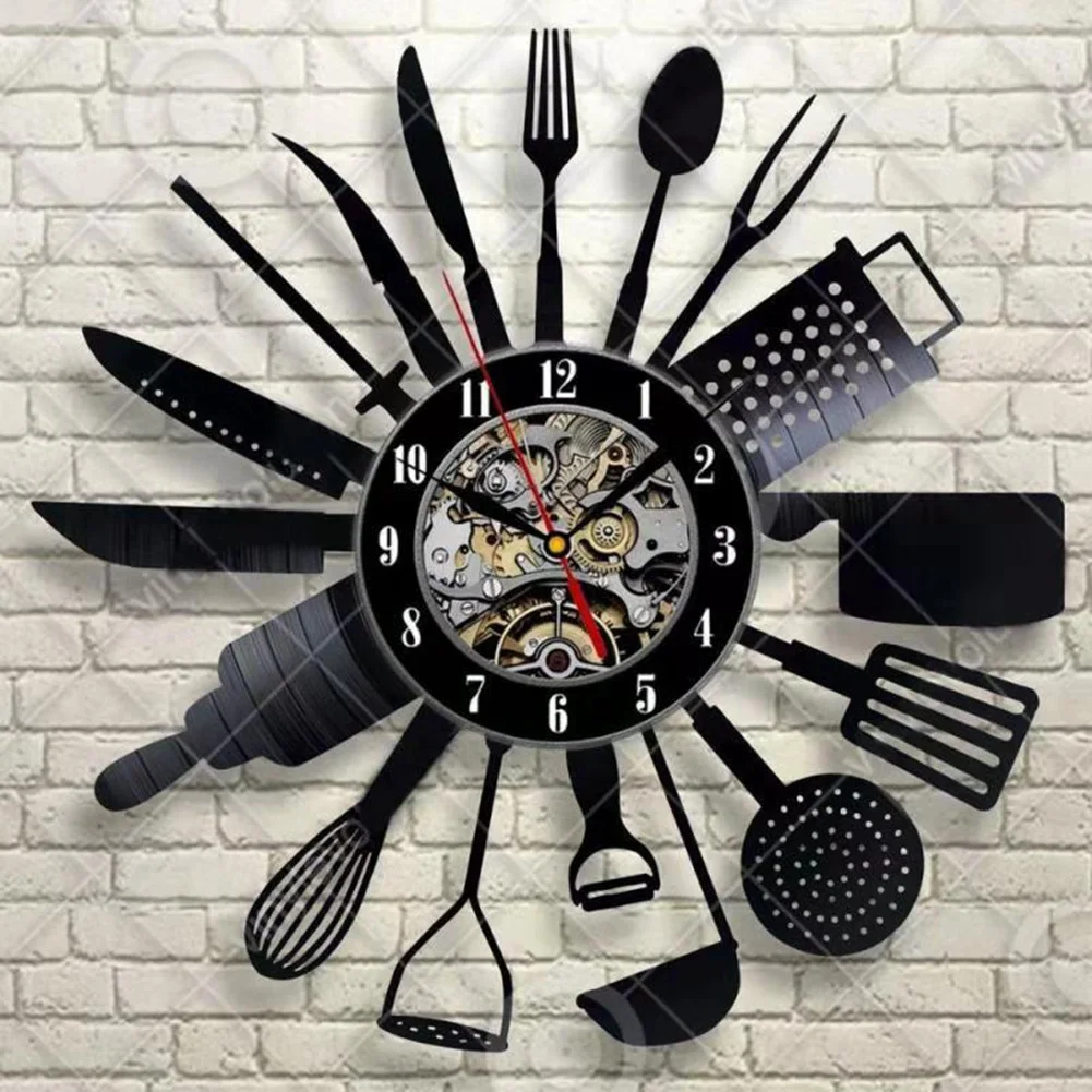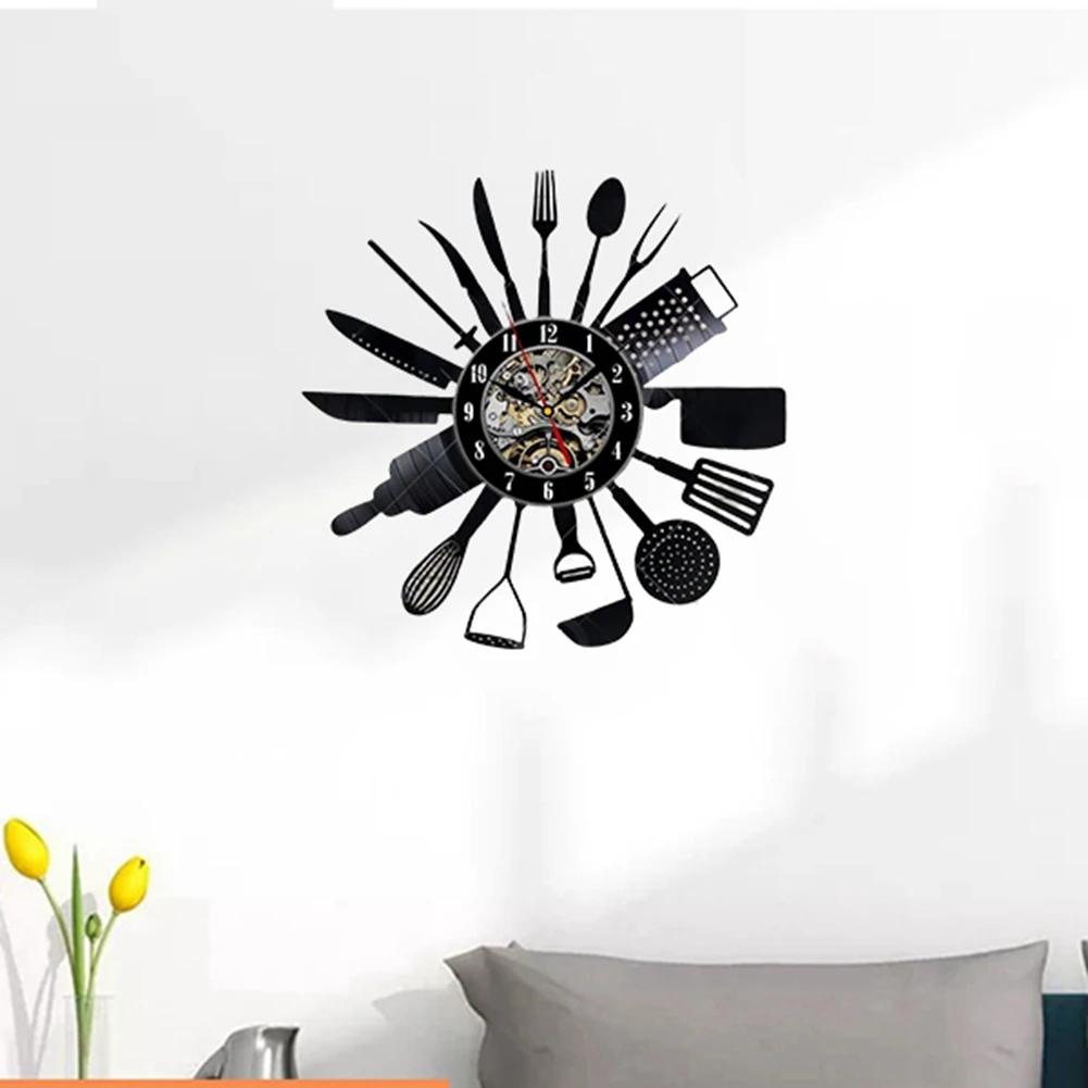 Cutlery Vinyl Record Wall Clock Modern Design Spoon Fork Decorative Kitchen Vintage Vinyl Clock Wall Watch Home Decor