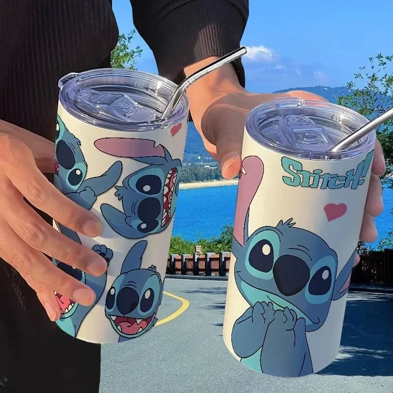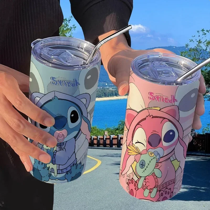 Disney Lilo & Stitch Cartoon Animation Stitch Thermos Cup Straw Coffee Cup Good-looking Personalized Creative Portable Water Cup
