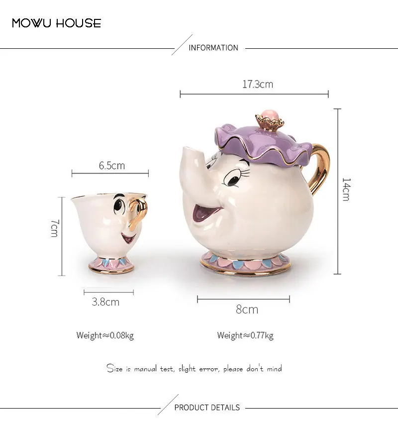 Disney Teapot Cute Cartoon Beauty and The BeastCoffee Pots Mug Mrs Potts Chip Cup Tea Pots CupOne Tea Sets Gift Droshipping