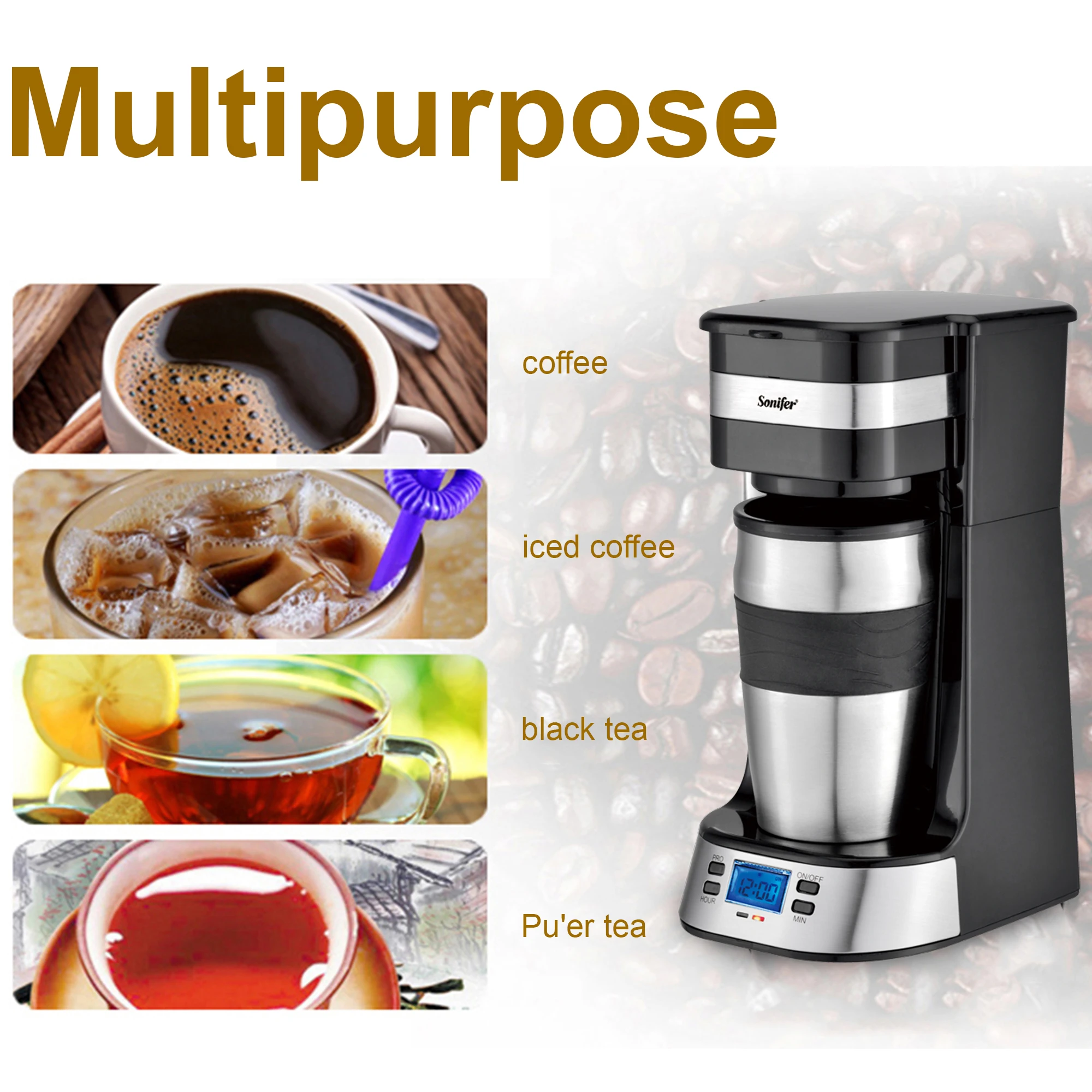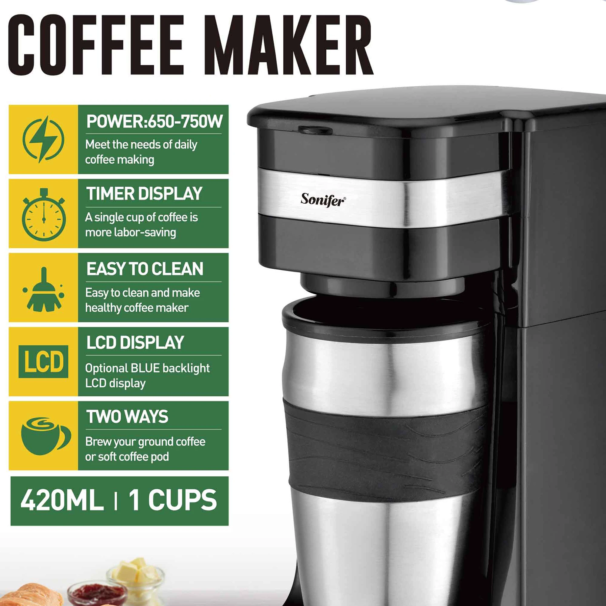 Drip Coffee Maker 0.42L With Filter LCD and Timer Display Household 750W Coffee Machine With 15cm Automobile Mug Fits Sonifer