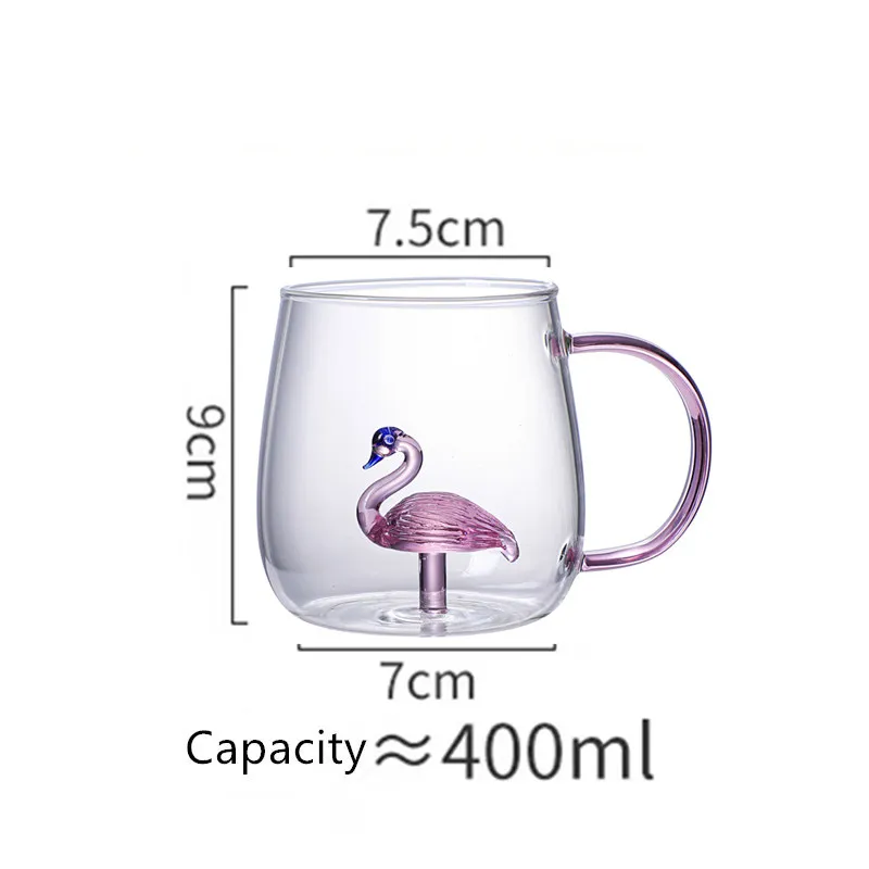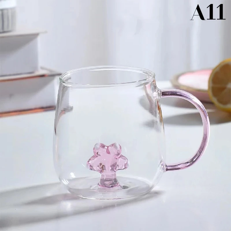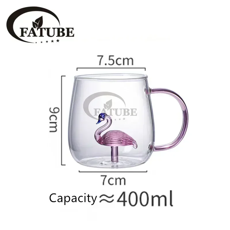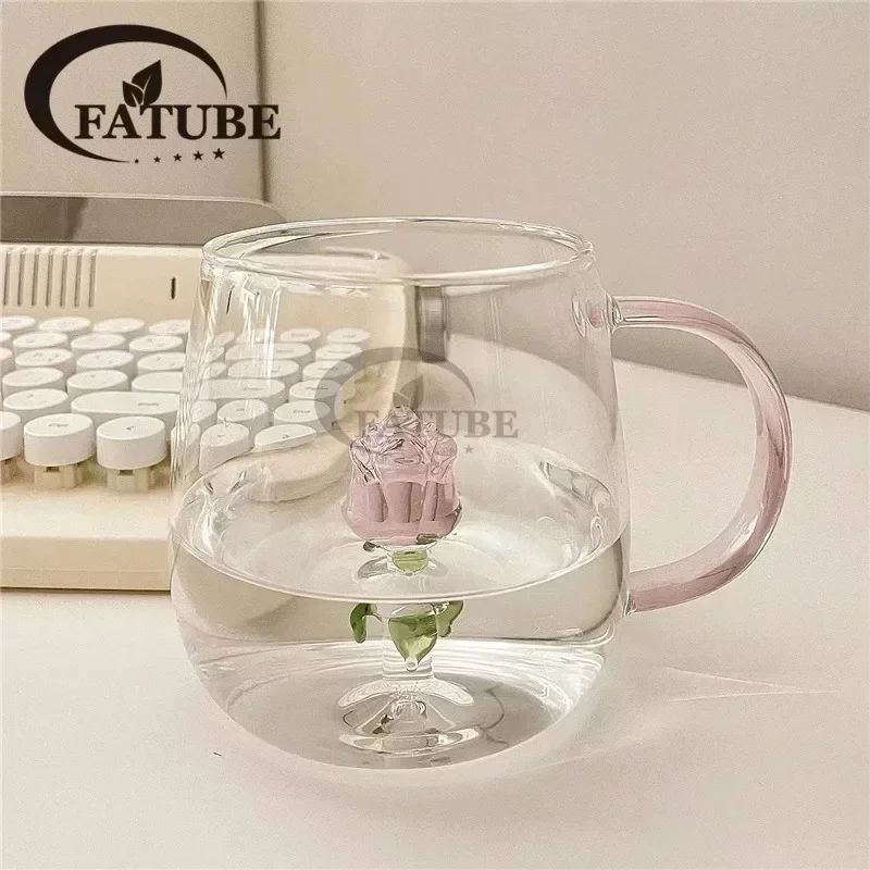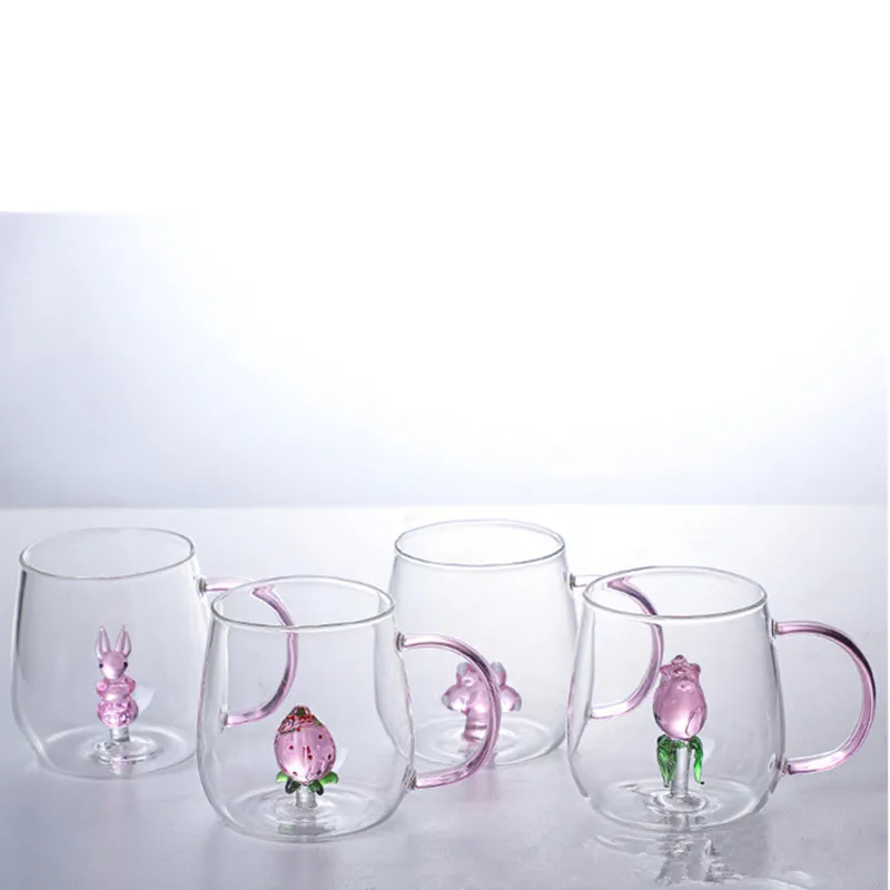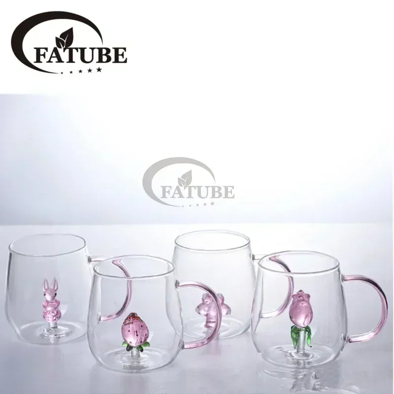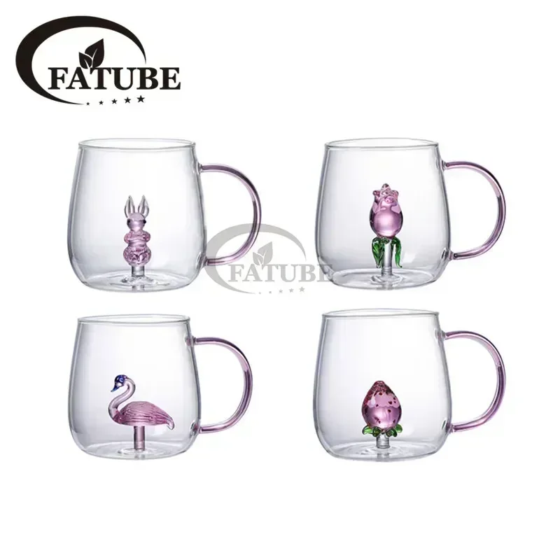 FATUBE 1PC Handgrip Creative Cups girl’s Preference 3D CUP Cartoon Pink Rose Rabbit Cat Paw Flamingo Shaped Glass Cup