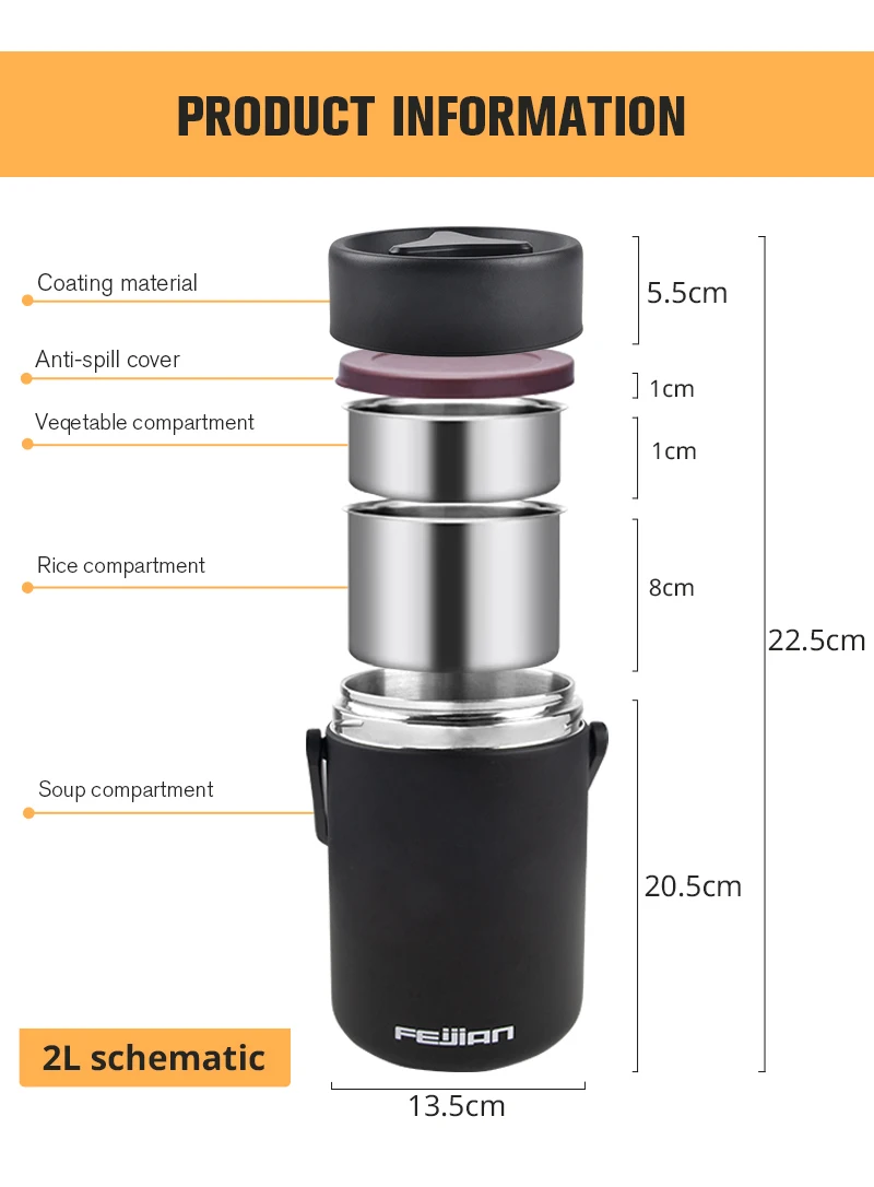 GIANXI 2.3L Portable Thermal Lunch Boxes For Food Food Storage Container Packed Bento Box Packed Lunch Boxes For Children