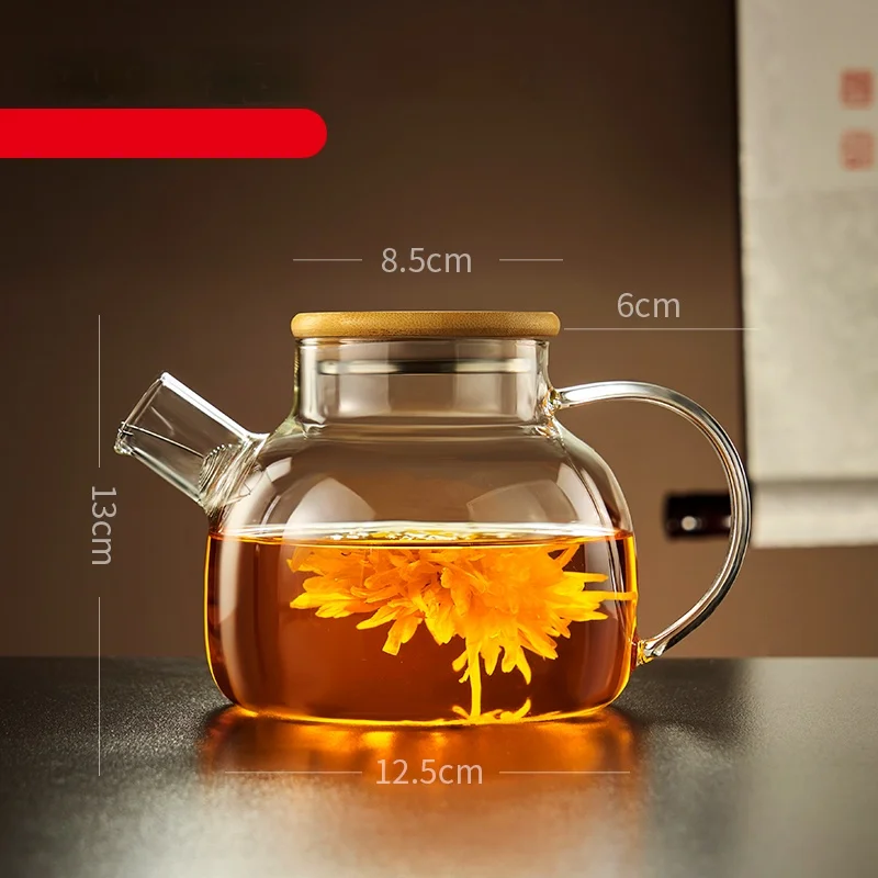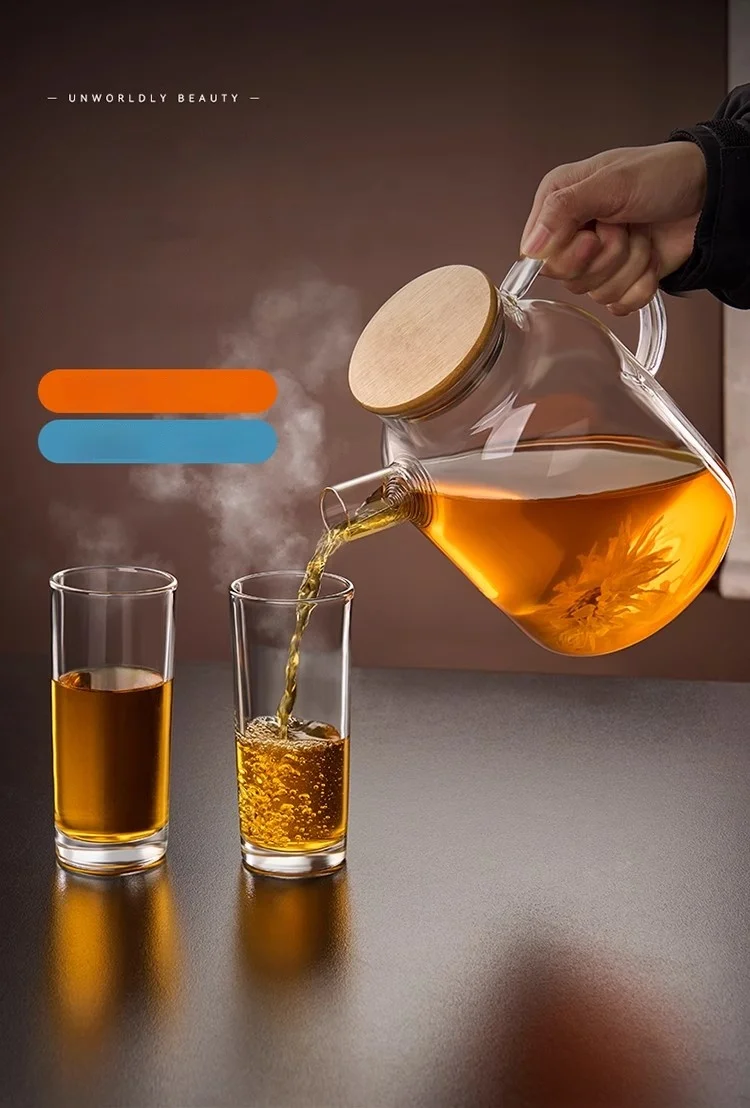 1800ML Transparent Glass Teapot Home And Kitchen Puer Tea Pot With Wooden Lid Kettle Tea Set Coffee And Tea Tableware