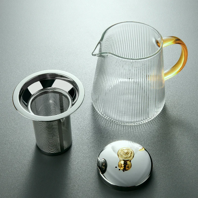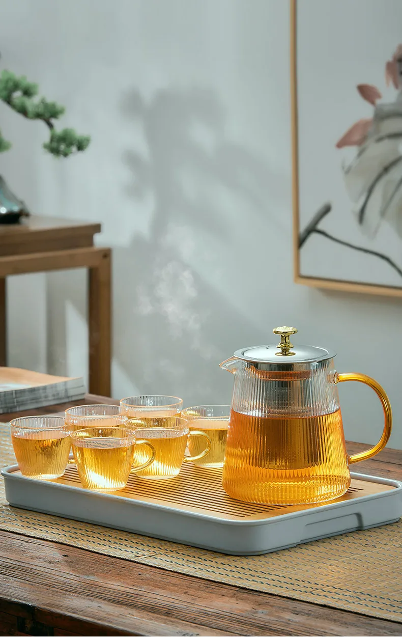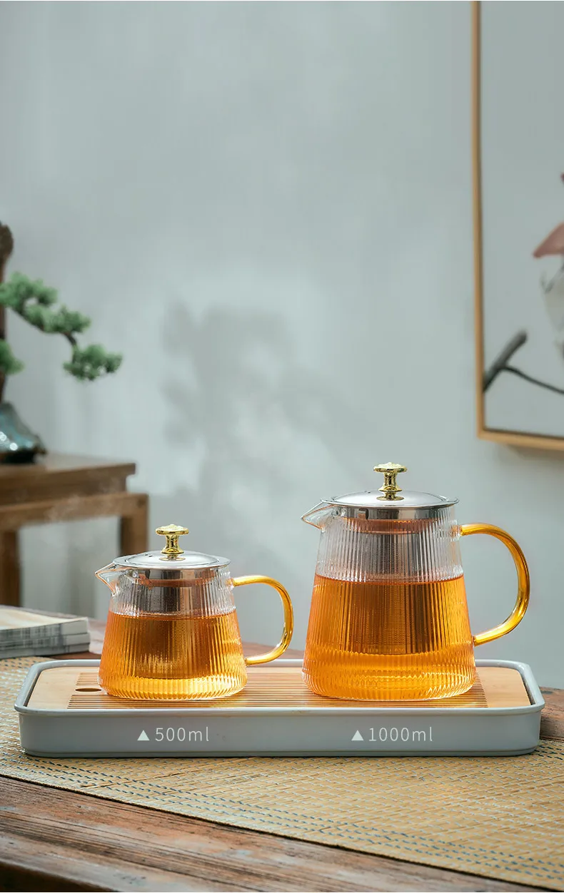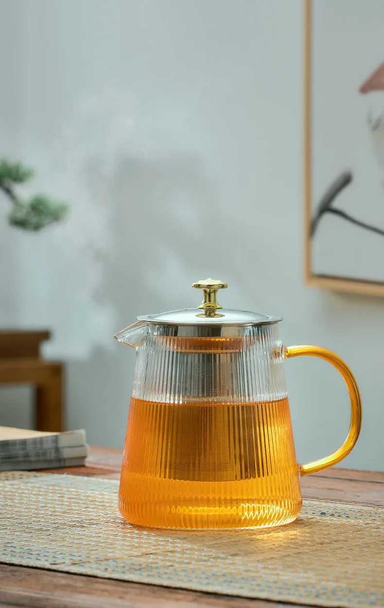 GIANXl Vertical Grain Teapot Transparent High Borosilicate Glass Tea Pot Set Heat Resistant Flower Tea Puer Tea Cold Kettle