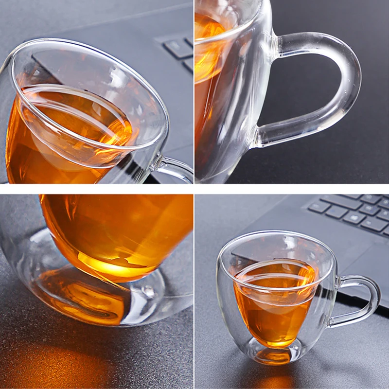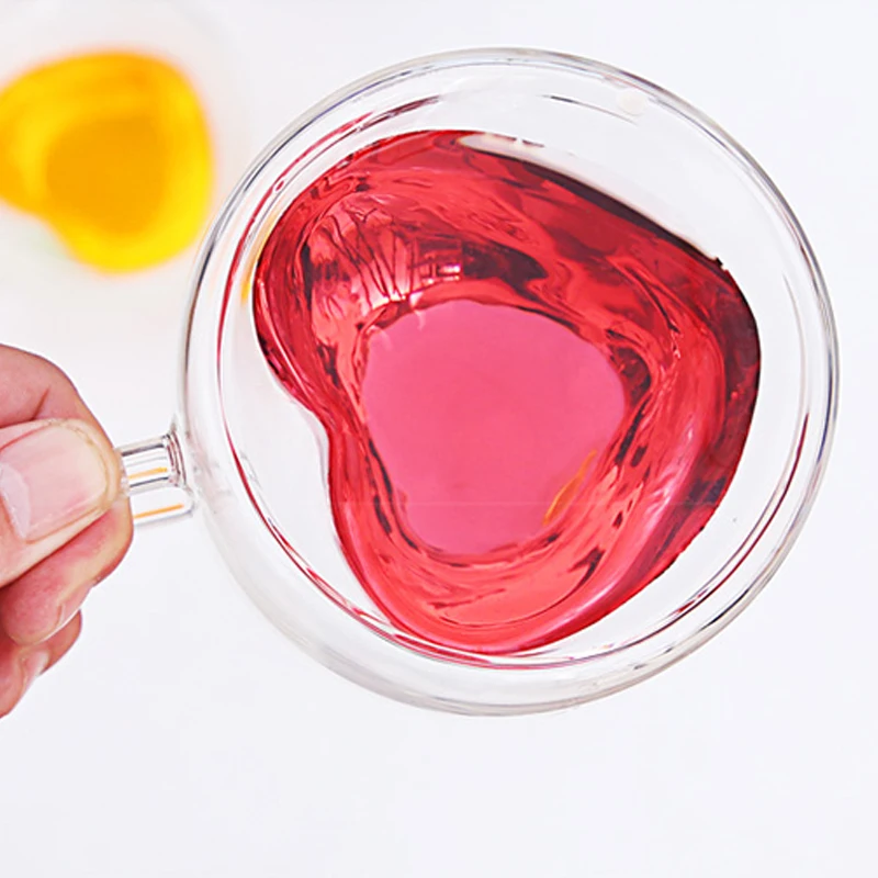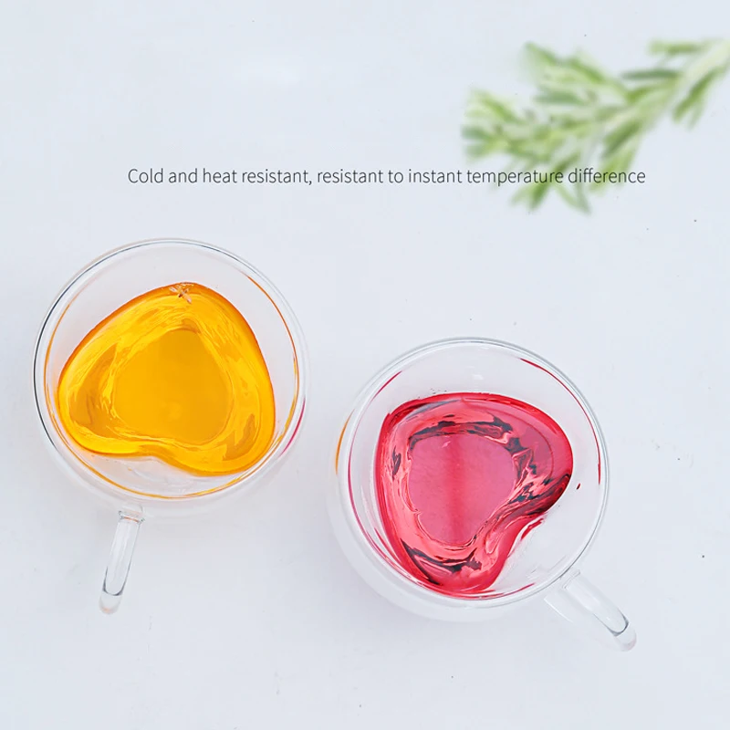 Heart Love Shaped Glass Mug for Couple, Double Glass Cup, Heat-Resistant Glasses, Cup for Wine, Tea, Milk, Coffee, Drinkware